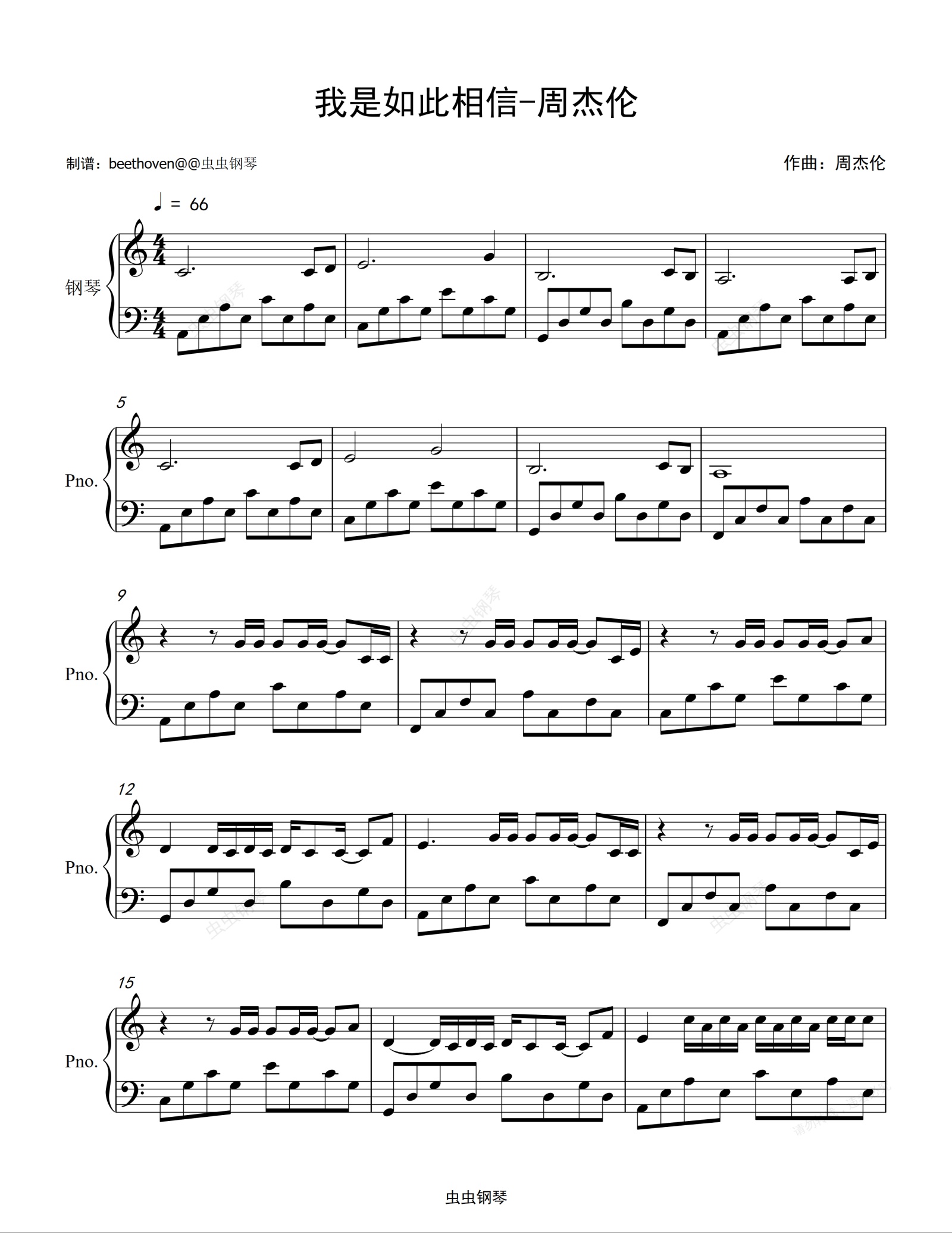 钢琴谱:我是如此相信-周杰伦(原版超好听)