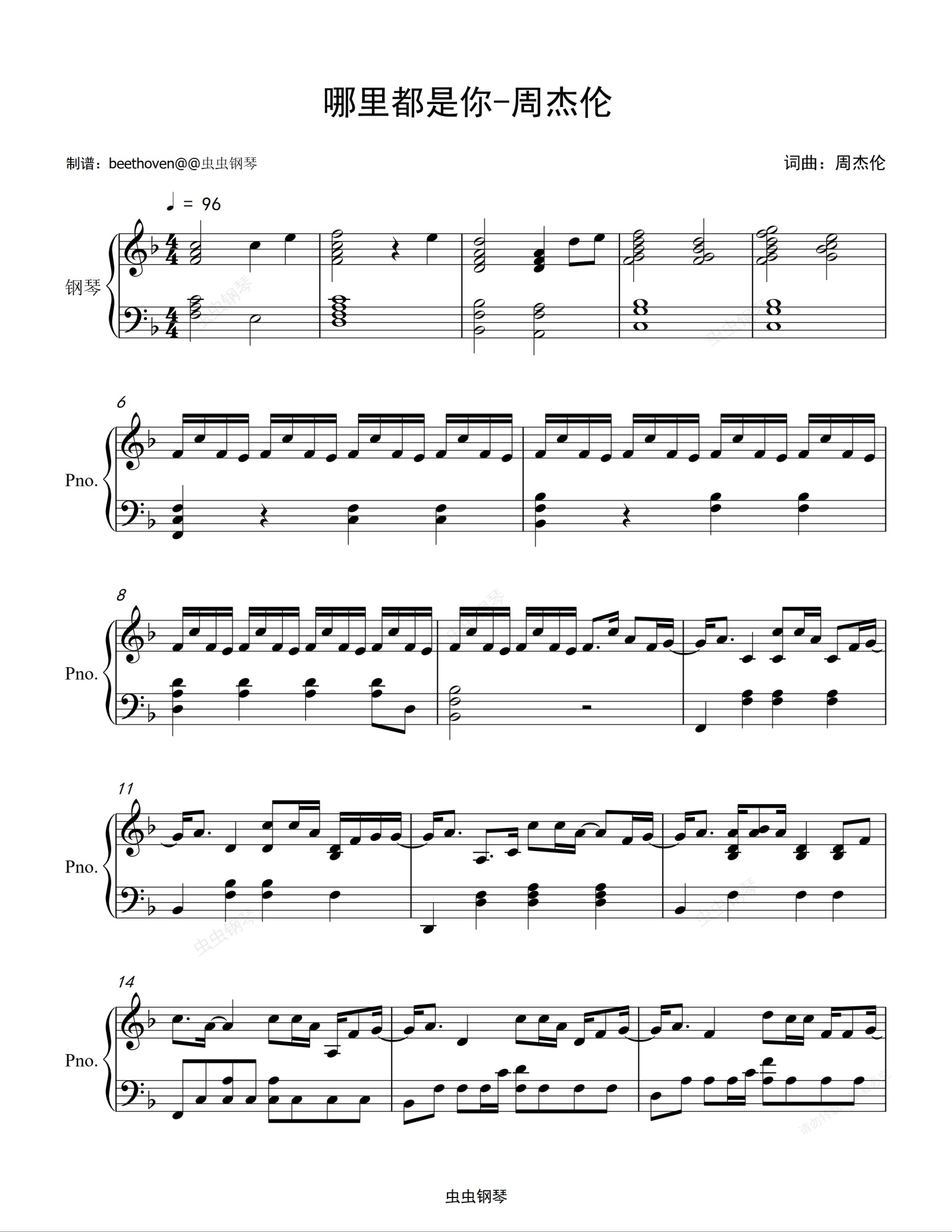 钢琴谱:哪里都是你-周杰伦(超好听版本)