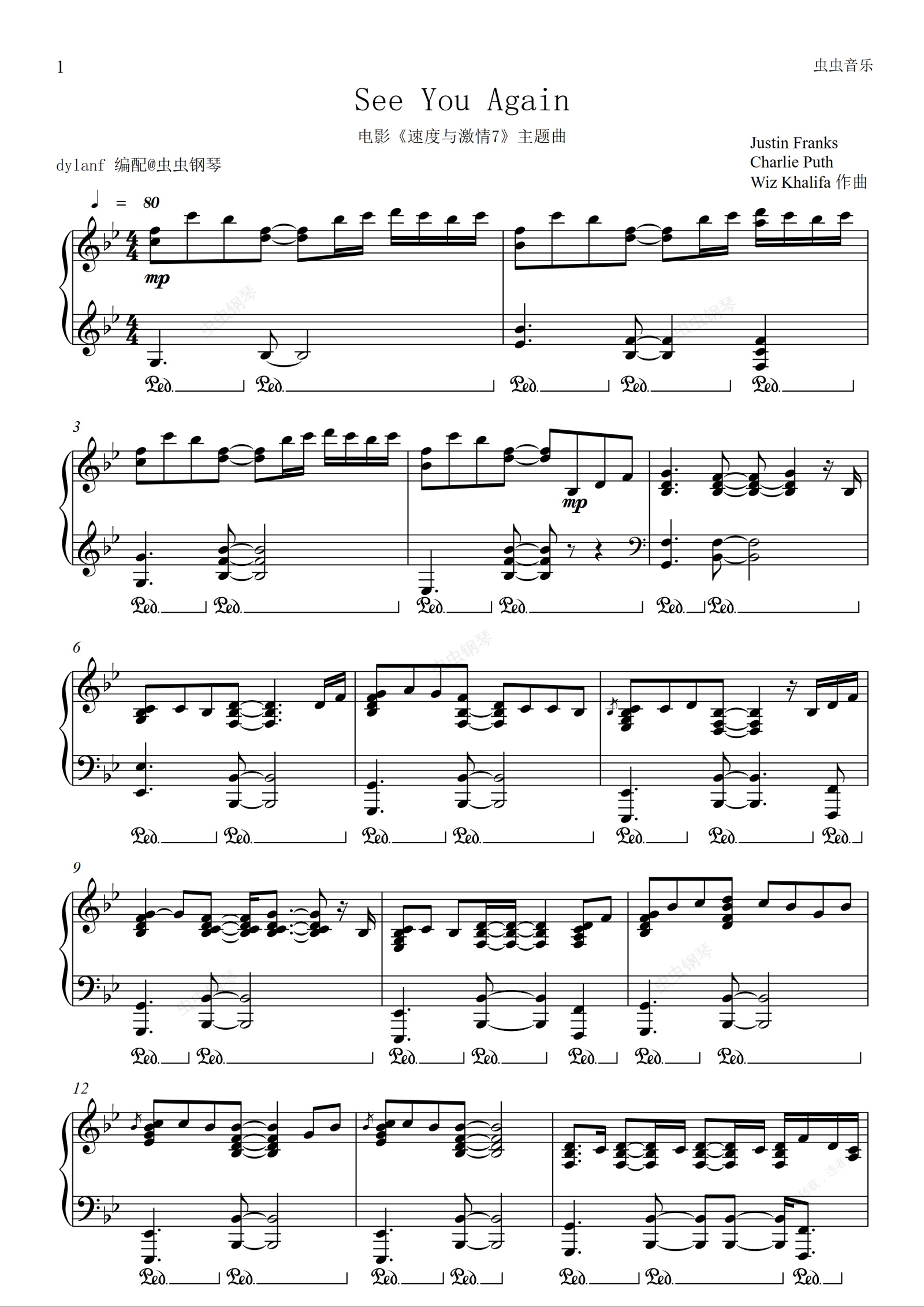 钢琴谱:演奏版See You Again《速度与激情7》主题曲 片尾曲Wiz Khalifa