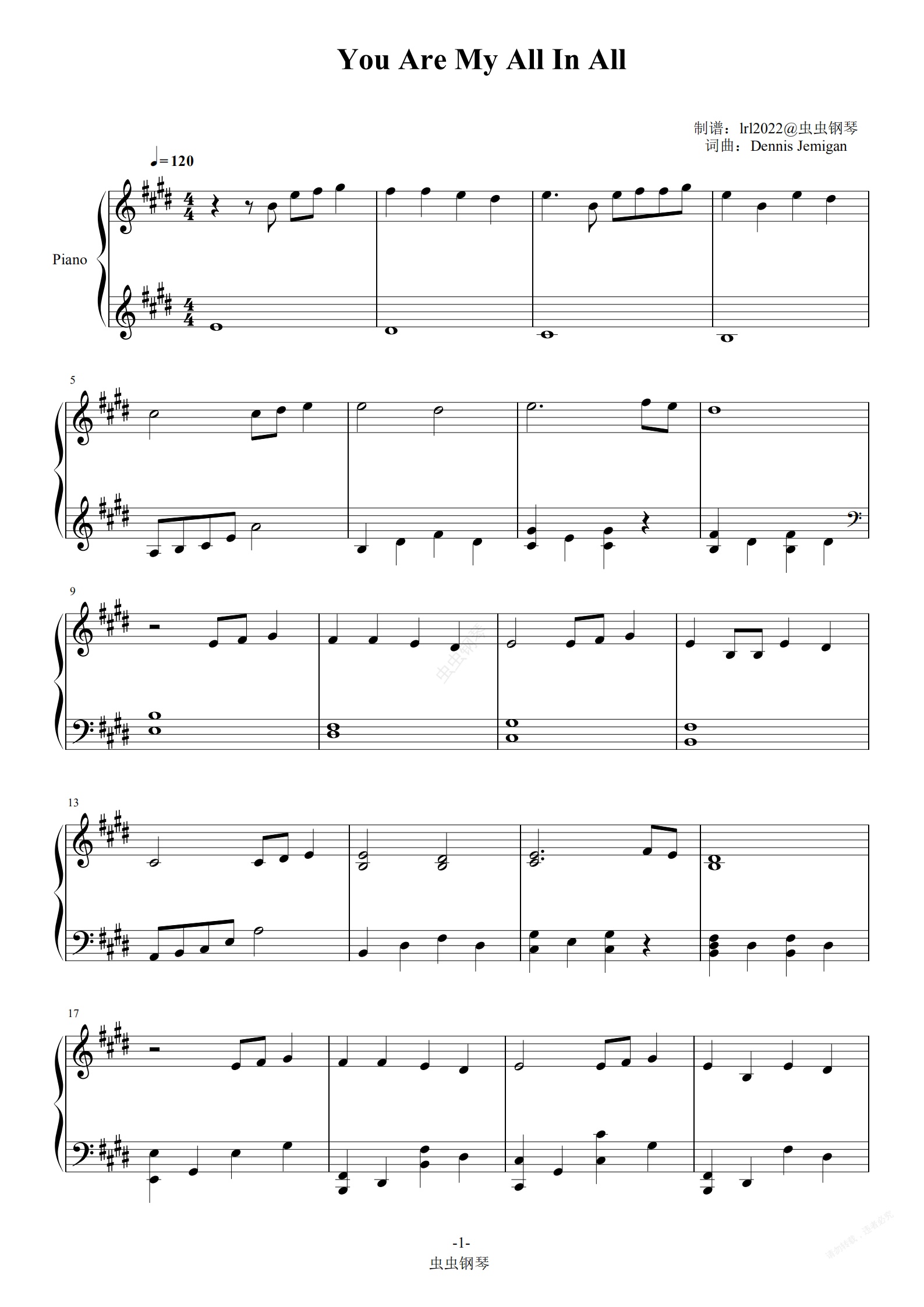钢琴谱:You Are My All In All-独奏版-钢琴谱-The Praise Baby Collection