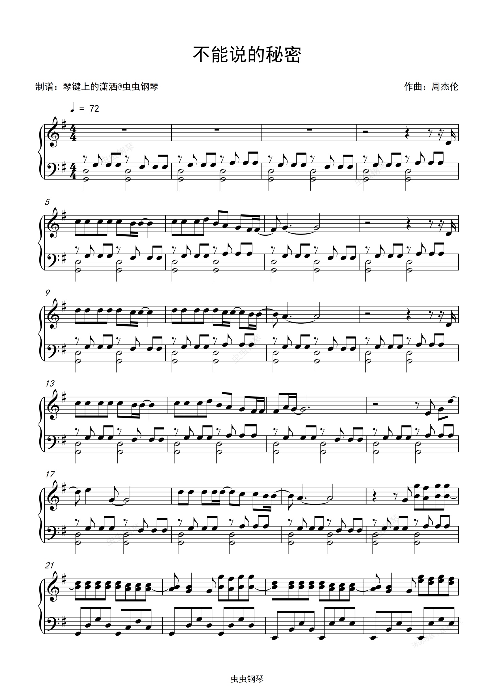 钢琴谱:《不能说的秘密》-周杰伦-原版G调