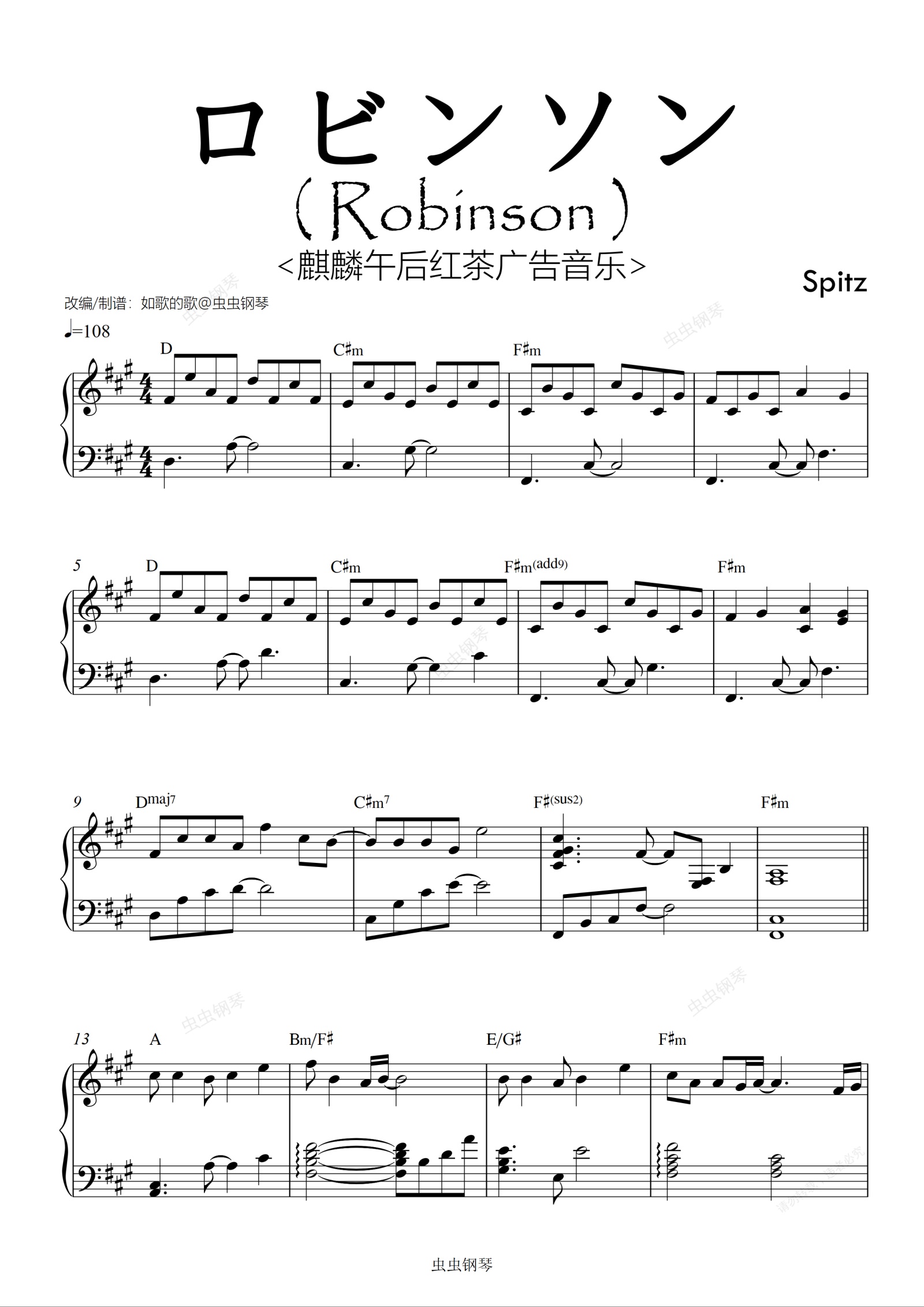 钢琴谱:ロビンソンRobinson麒麟午后红茶广告音乐轻柔版