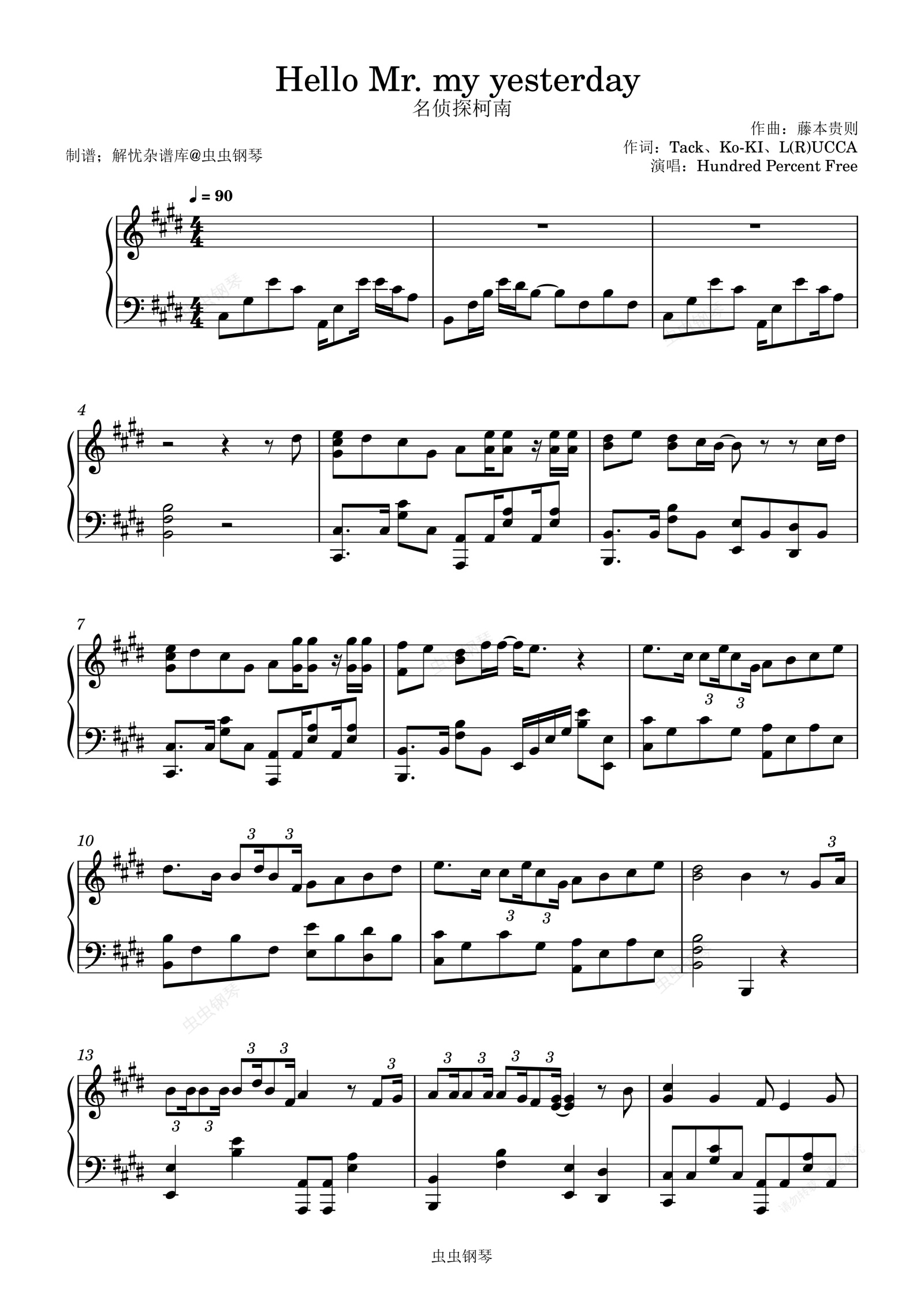 钢琴谱:Hello Mr. my yesterday 《名侦探柯南》