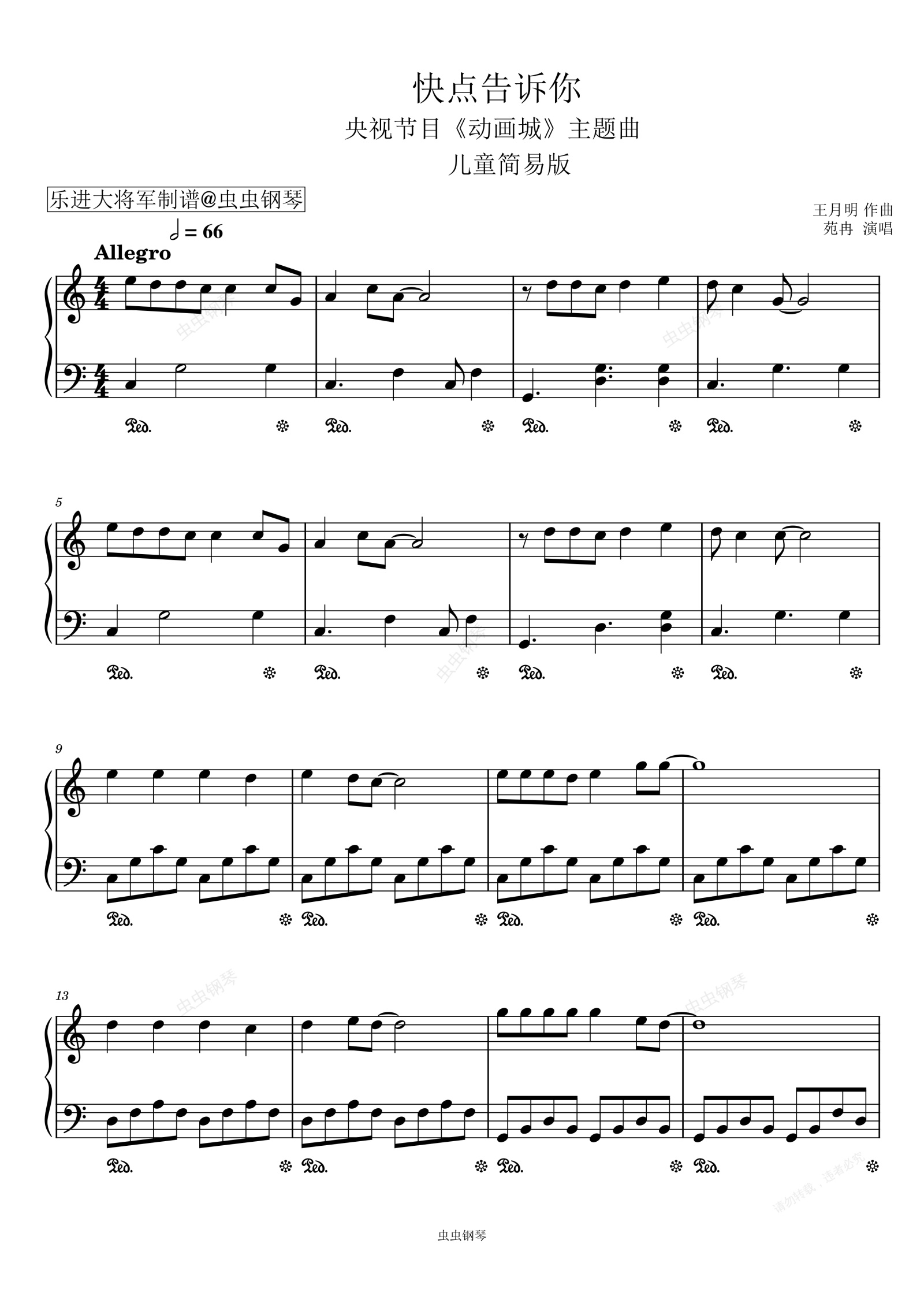钢琴谱:快点告诉你《动画城》主题曲 C调儿童简易版