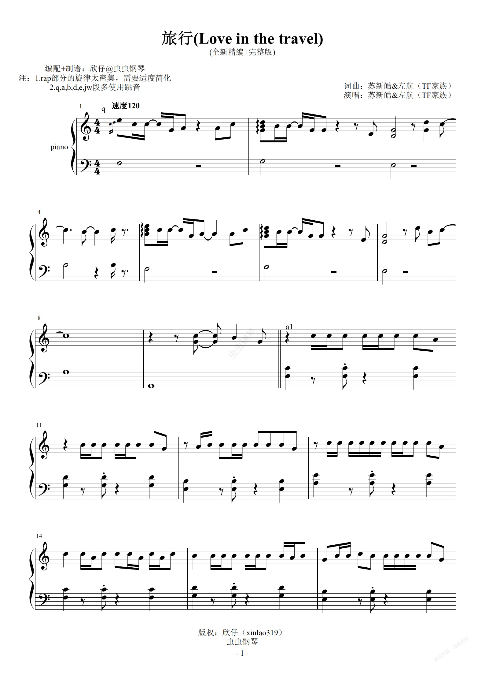 钢琴谱:TF家族-《旅行Love in the travel》(全新精编+完整版)