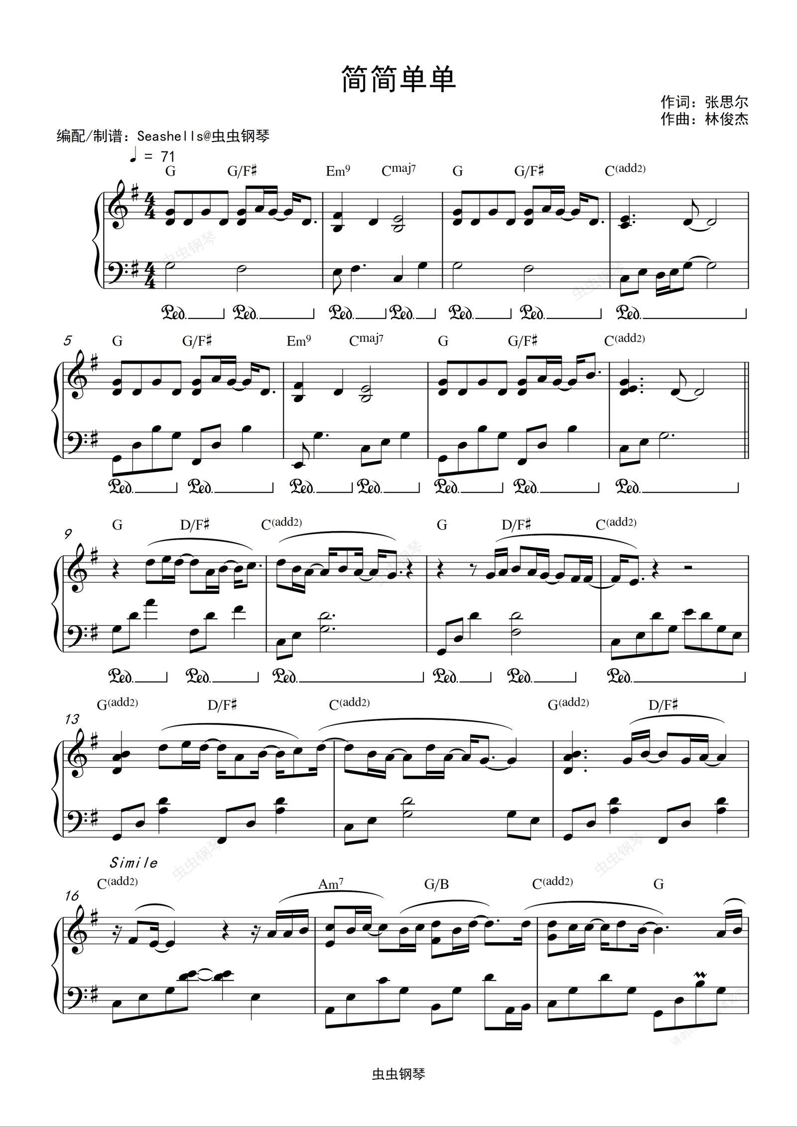 钢琴谱:林俊杰-《简简单单》精编钢琴独奏