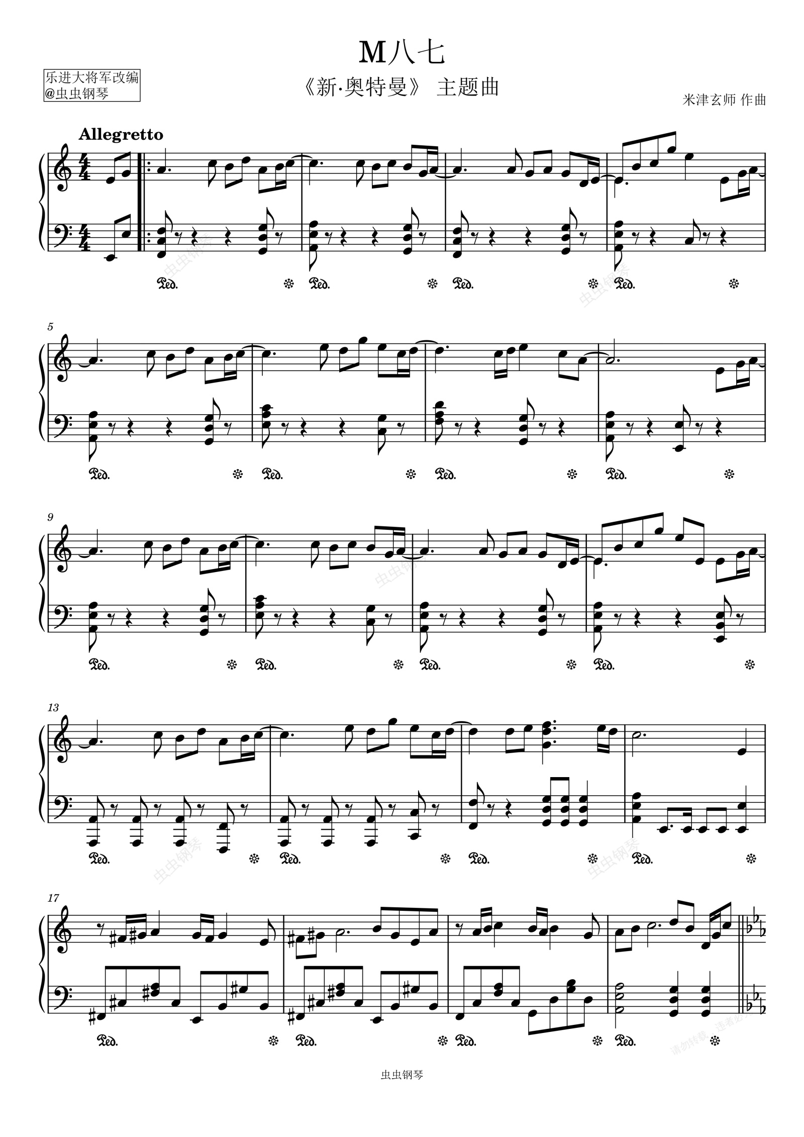 钢琴谱:C调简易《M八七》米津玄师演唱,《新奥特曼》主题曲