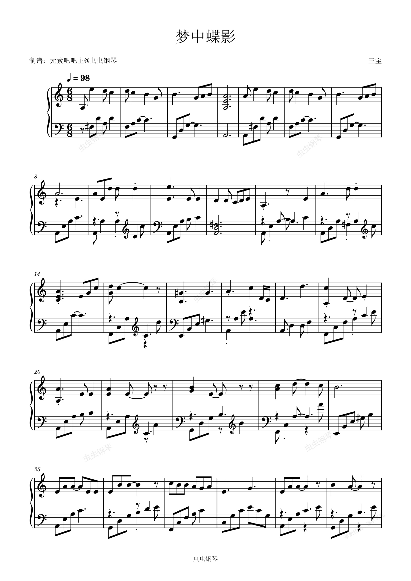 钢琴谱:西游记后传 插曲 《梦中蝶影》