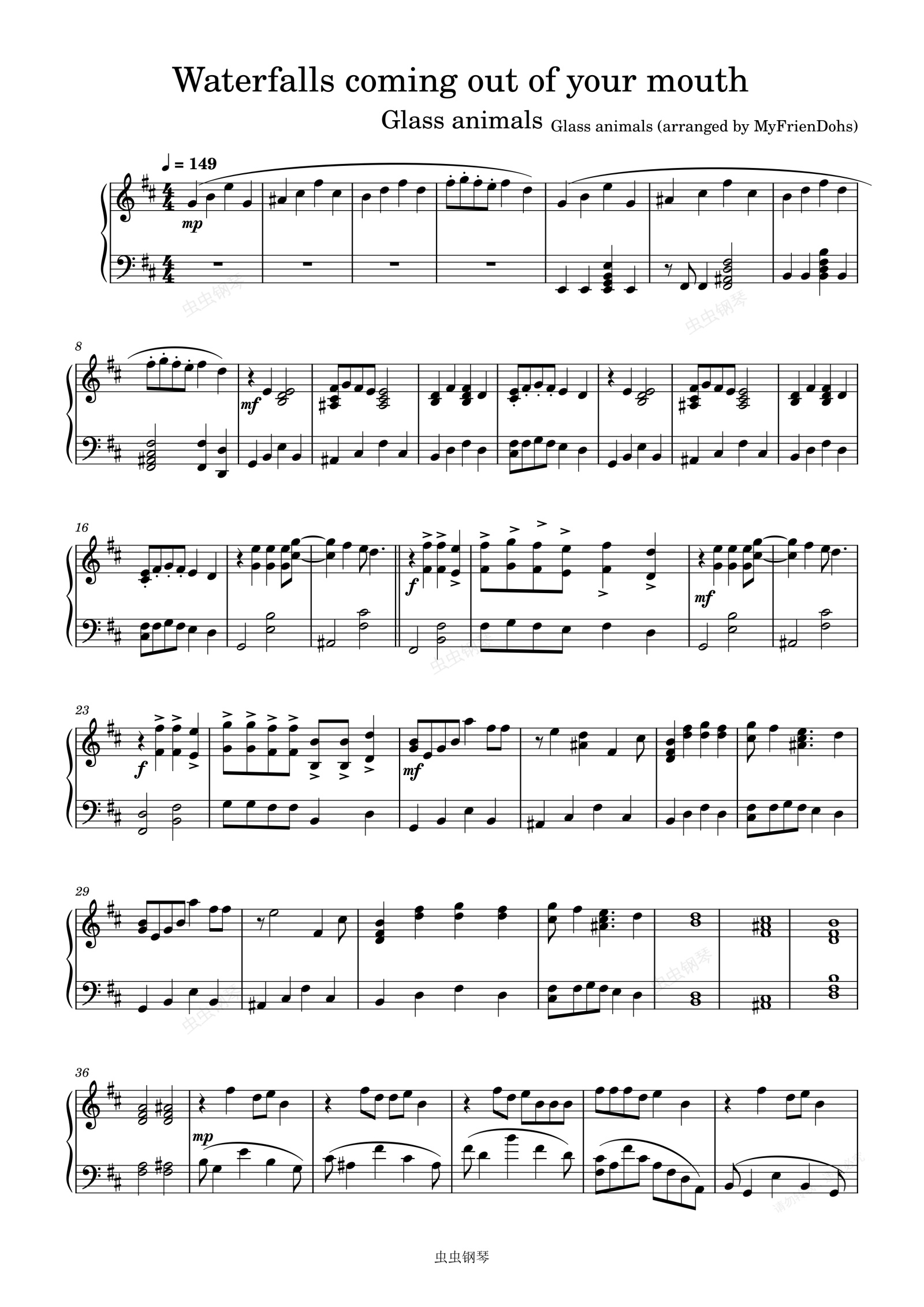 钢琴谱:Waterfalls coming out of your mouth-Glass Animals