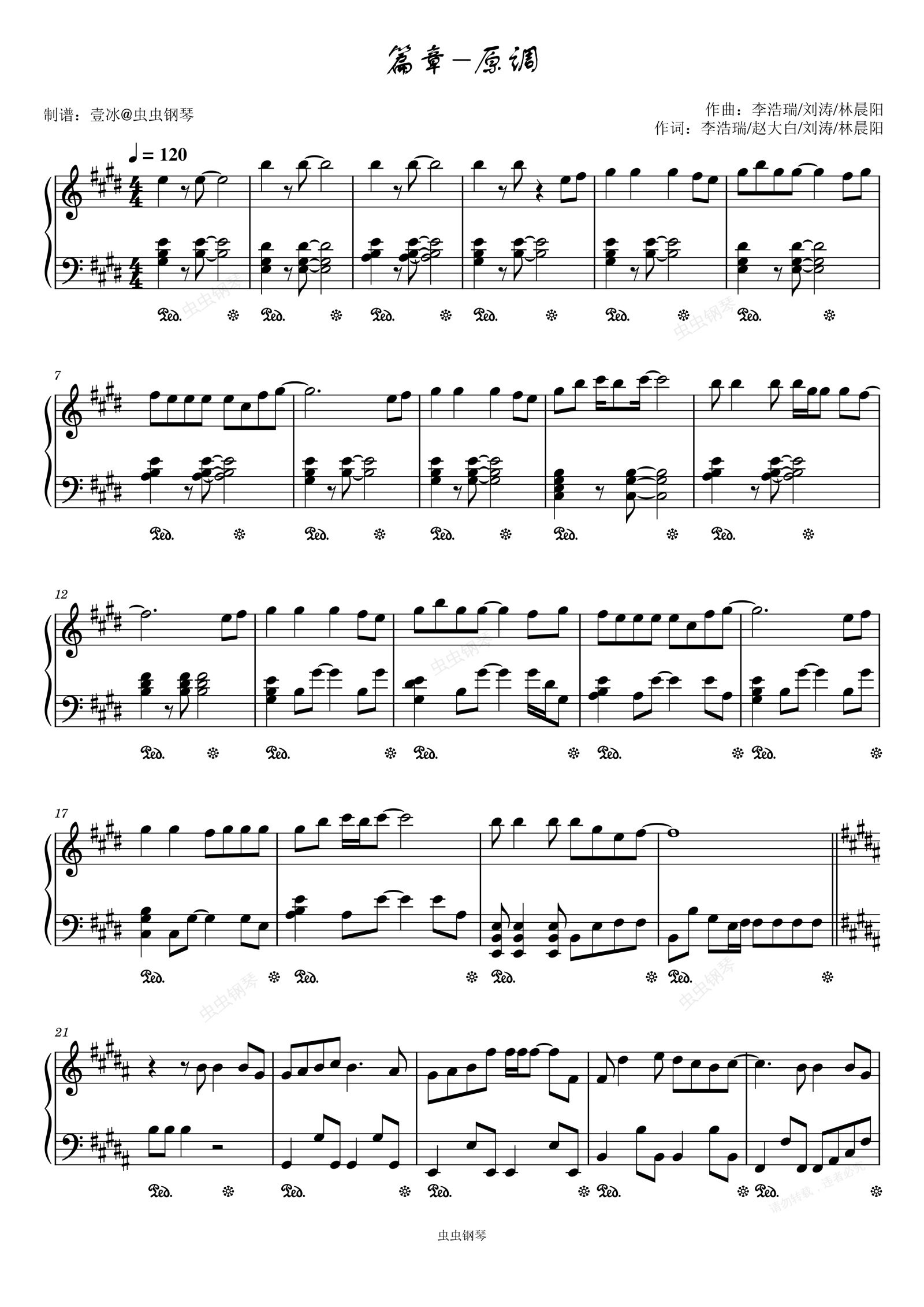钢琴谱:篇章//天赐的声音第三季》综艺主题曲-原调