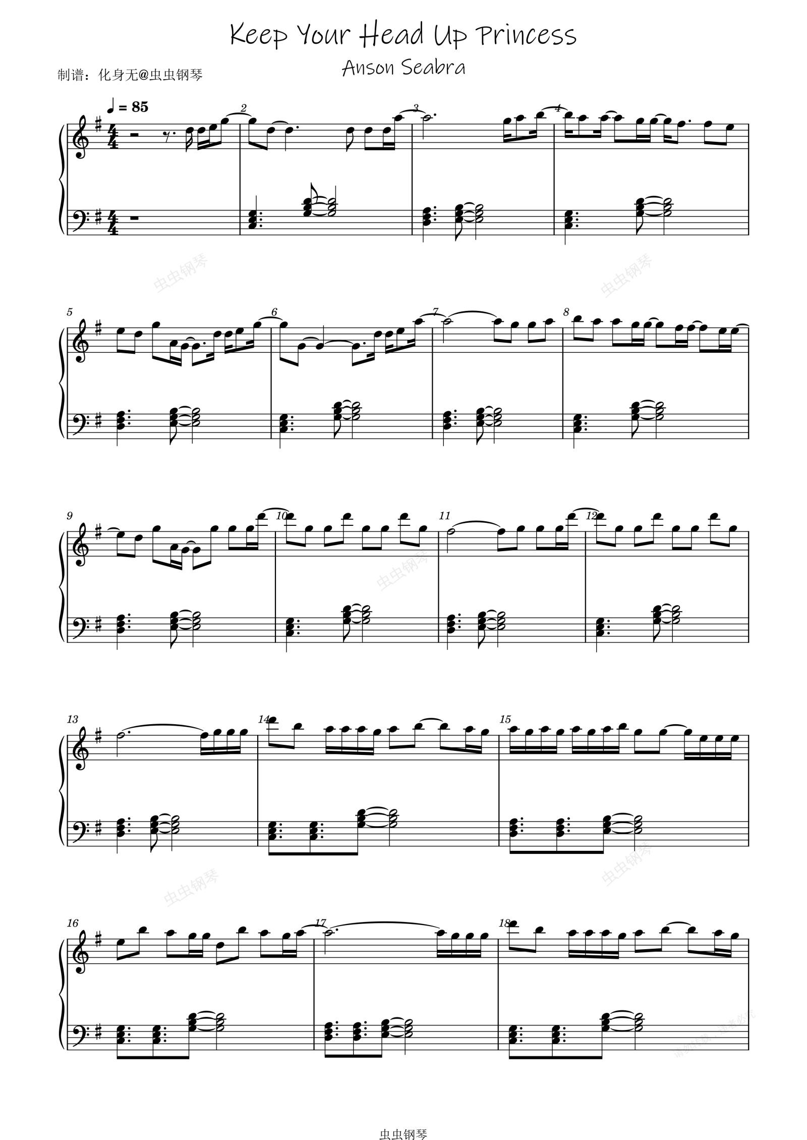 钢琴谱:Keep Your Head Up Princess(新版)G调独奏版