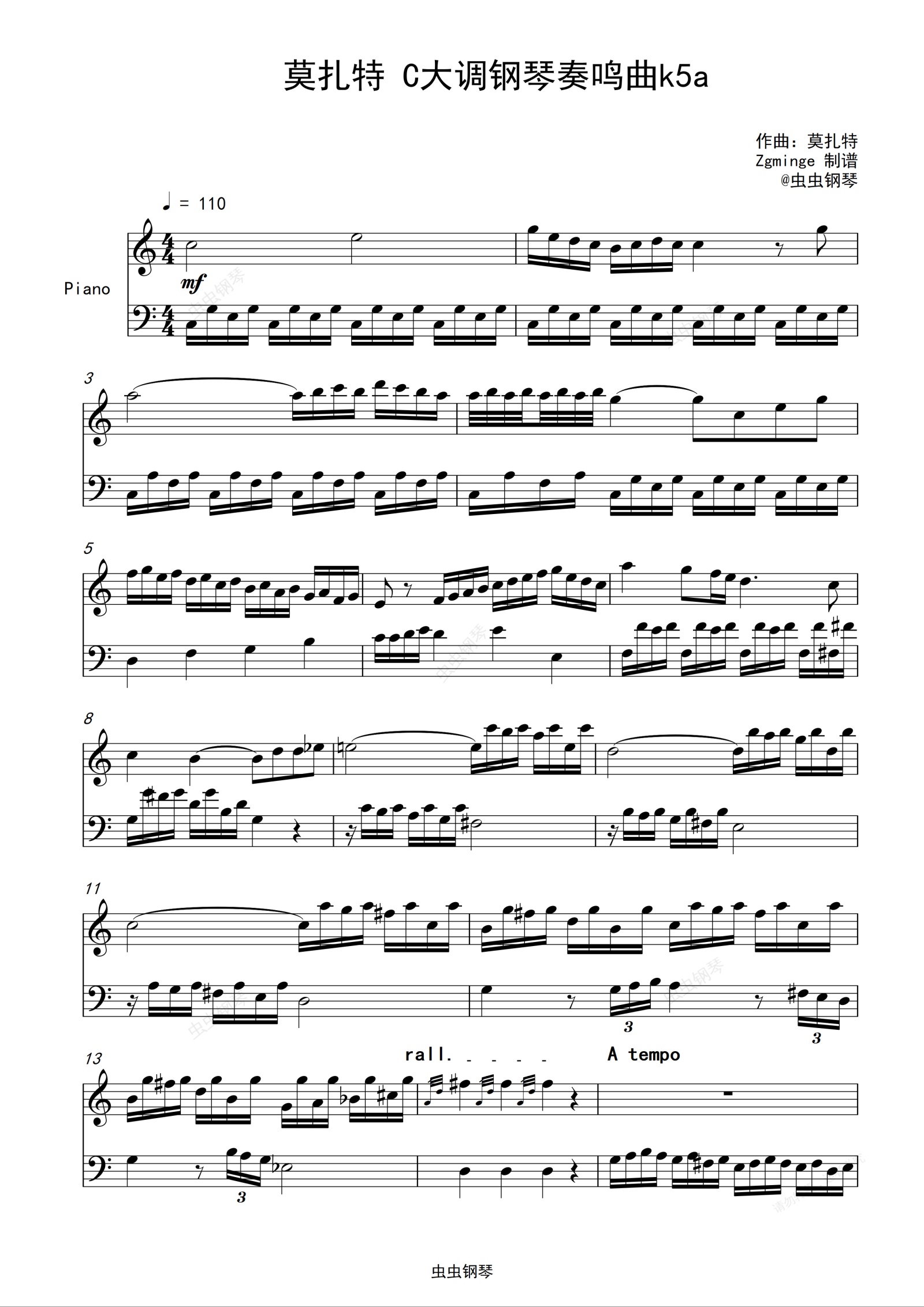 钢琴谱:莫扎特 C大调钢琴奏鸣曲k5a