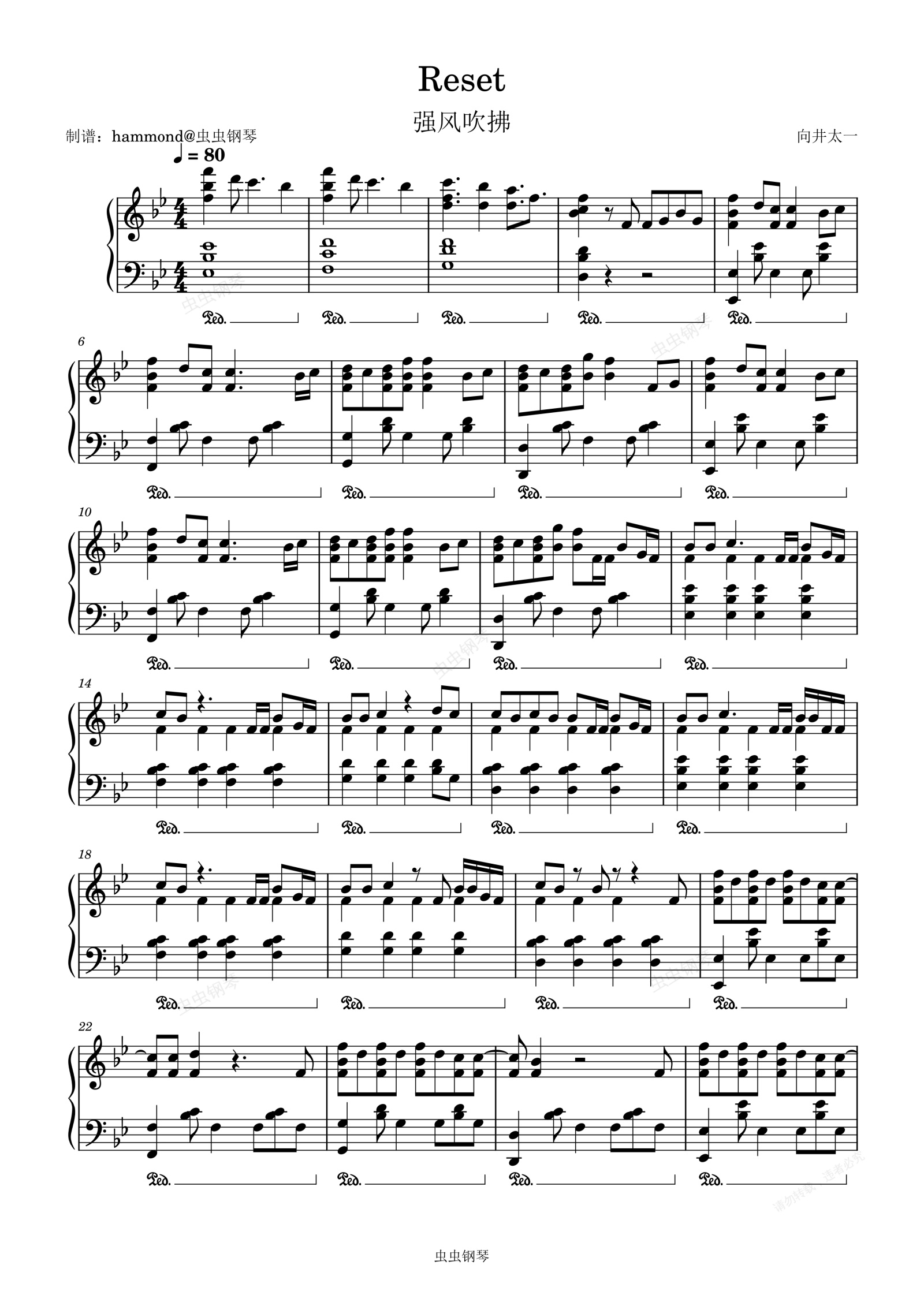 钢琴谱:《强风吹拂》ED1「リセット(Reset)」完整版