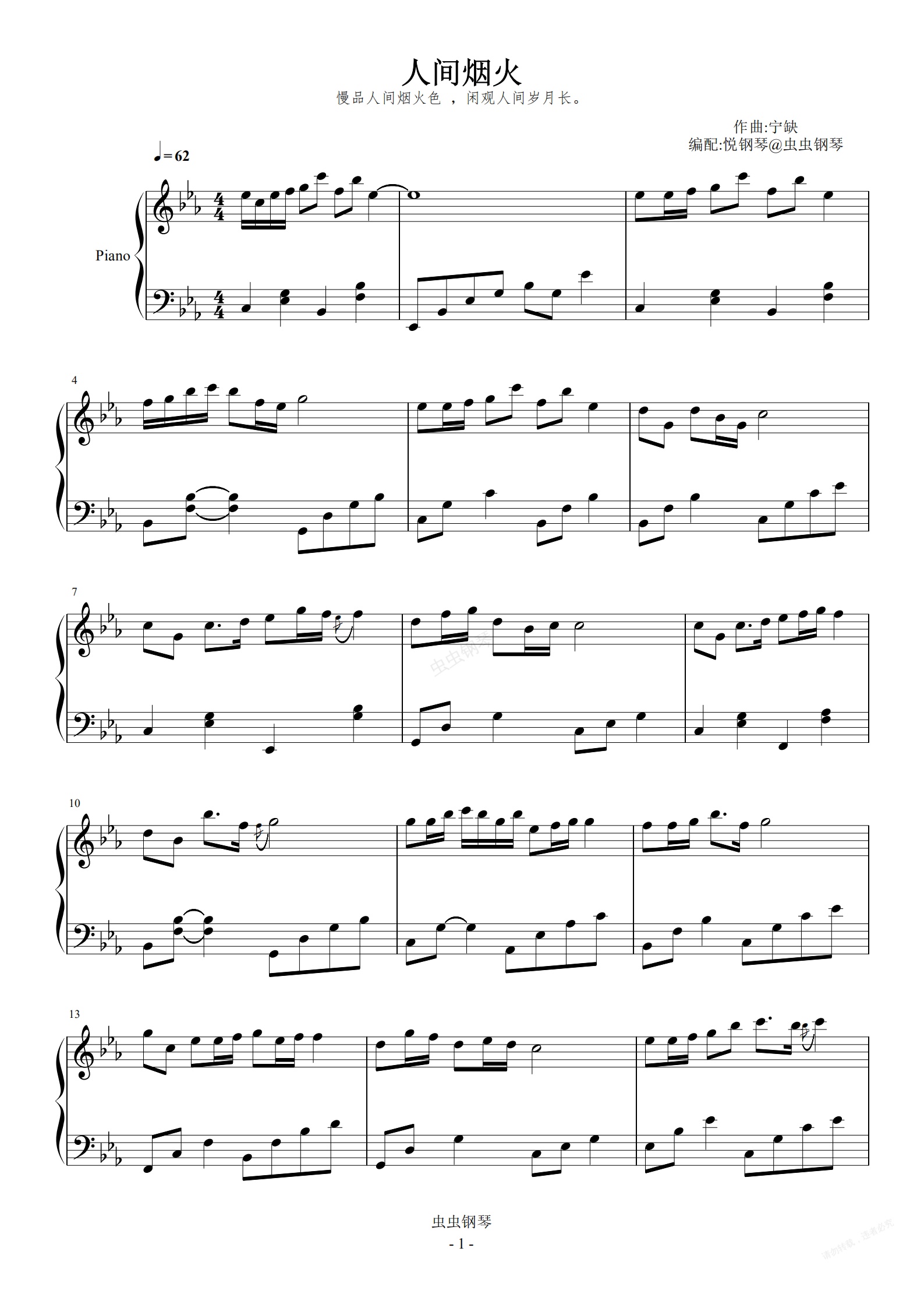 钢琴谱:人间烟火 (原调版)程响