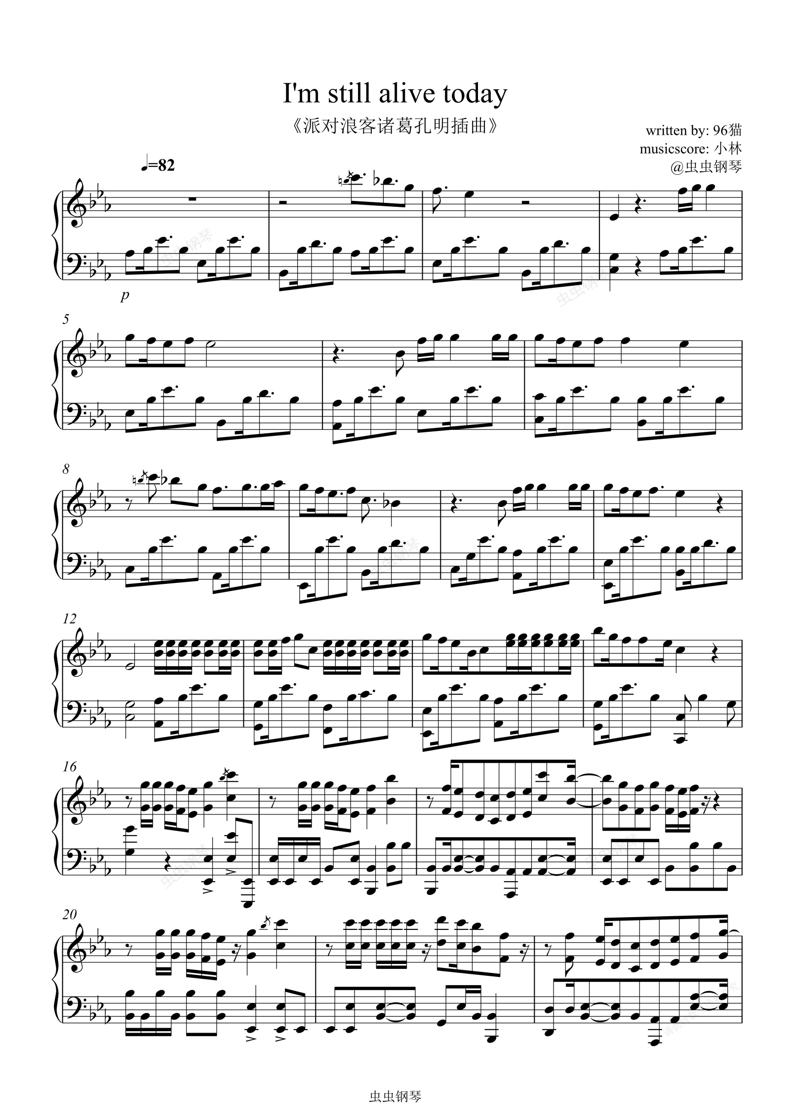 钢琴谱:《派对浪客诸葛孔明》插曲I'm still alive today