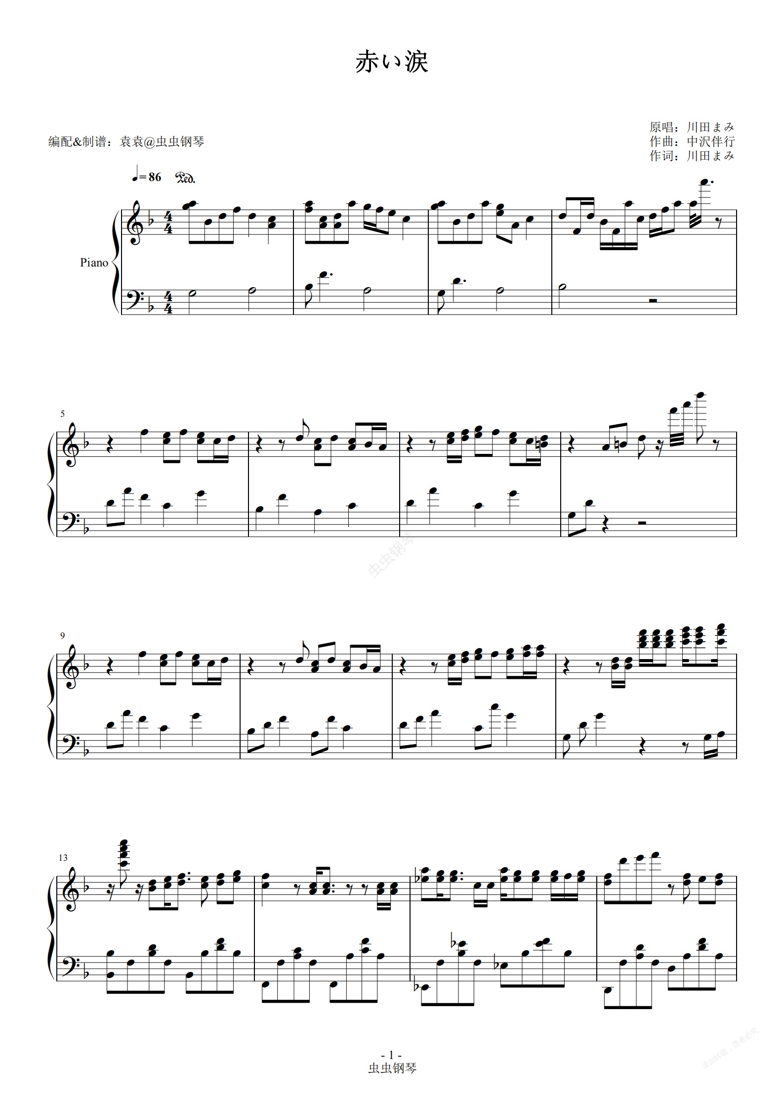 钢琴谱:赤い涙 灼眼的夏娜插曲 完美演奏版