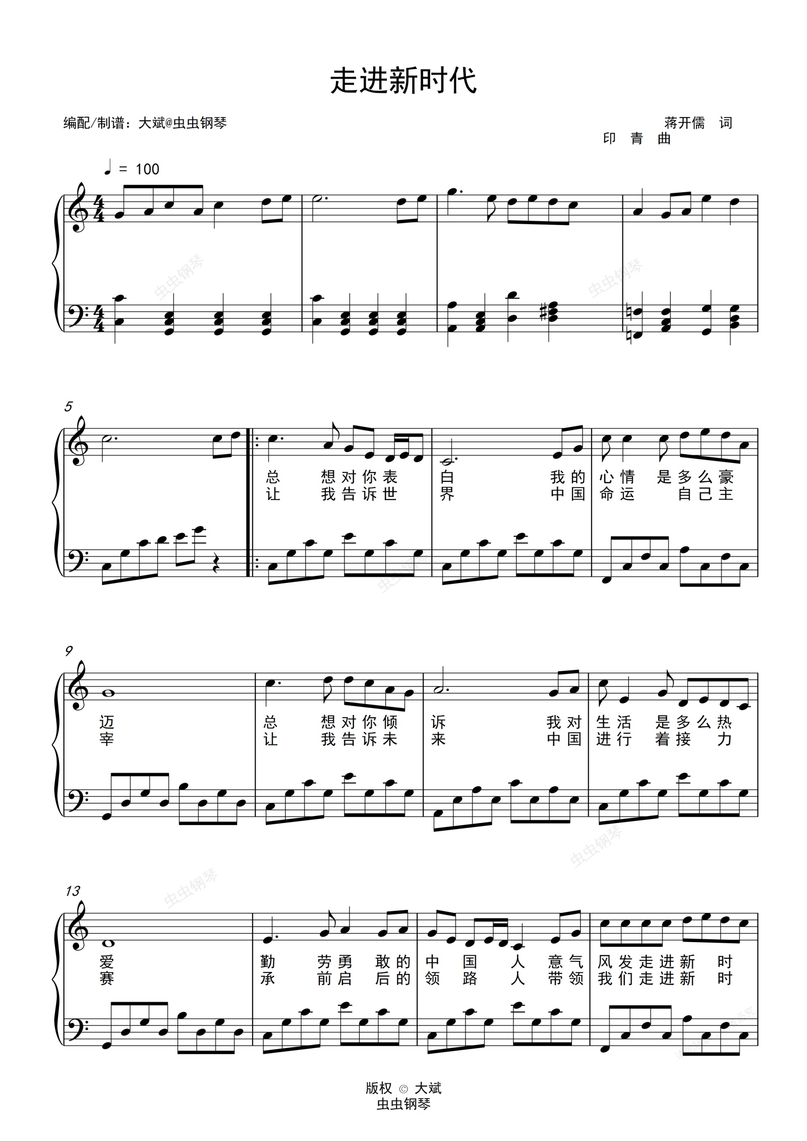 钢琴谱:走进新时代--C调简单