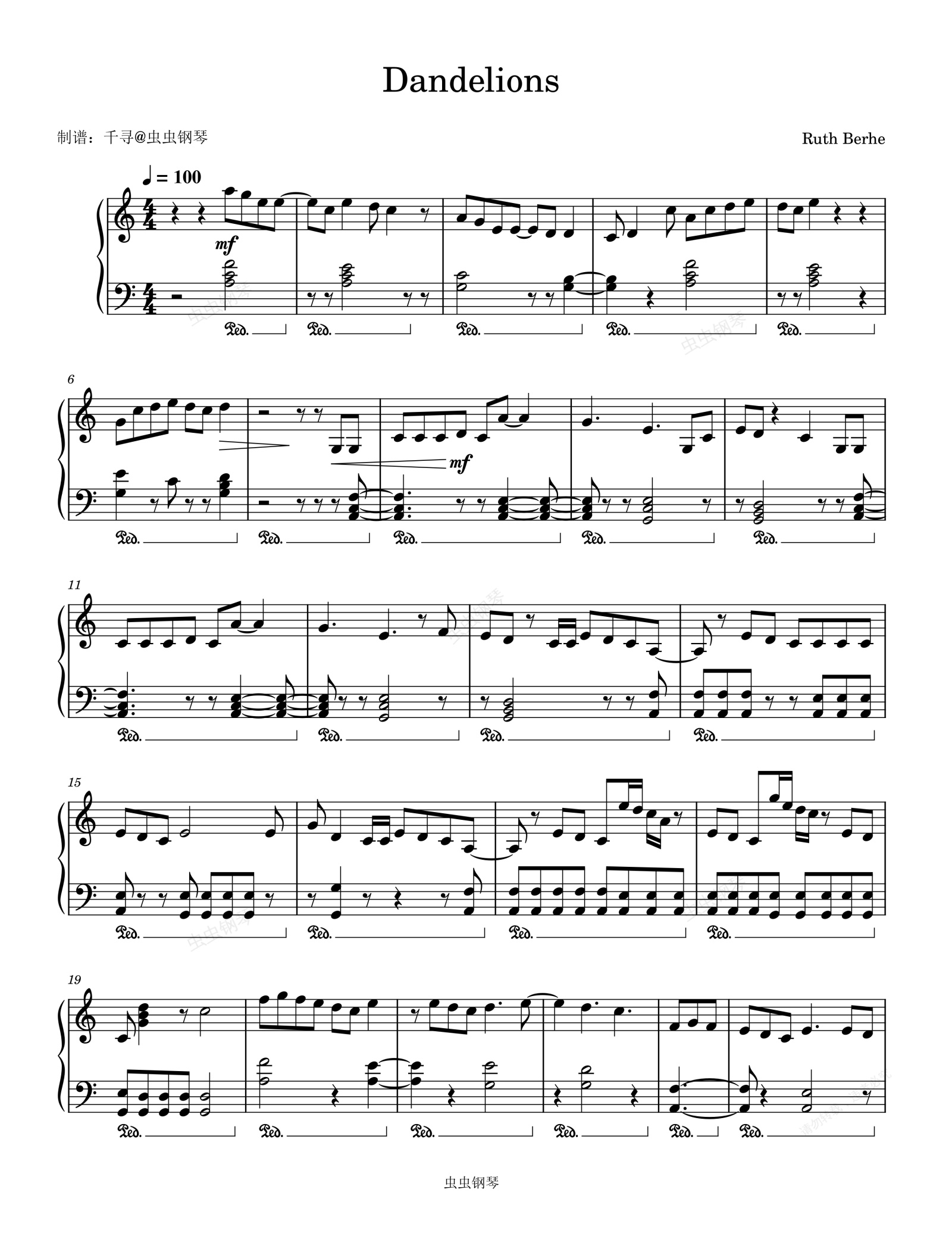 钢琴谱:Dandelions - Ruth B. (鲁思·B