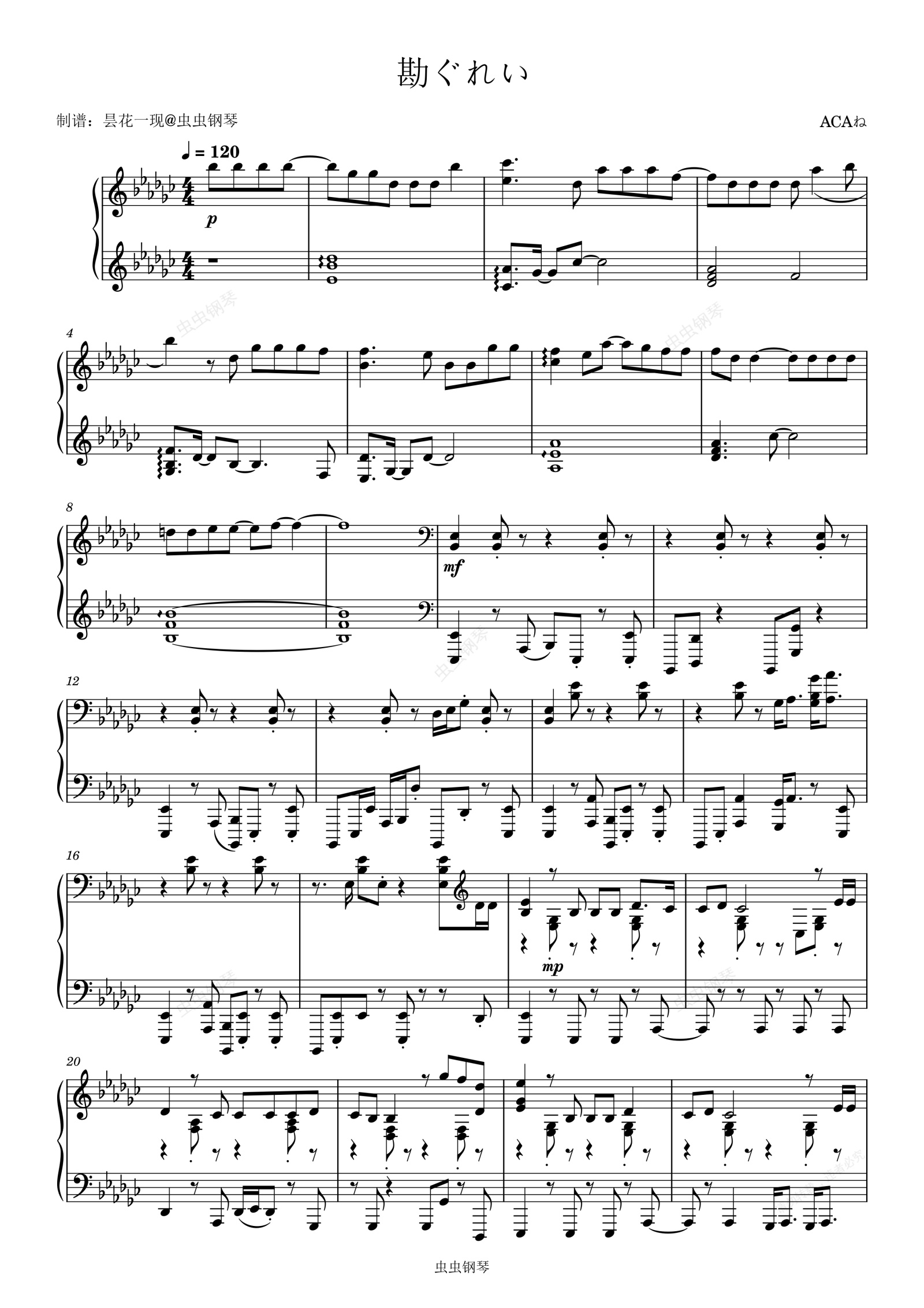 钢琴谱:勘ぐれい(灰心感)ずっと真夜中でいいのに