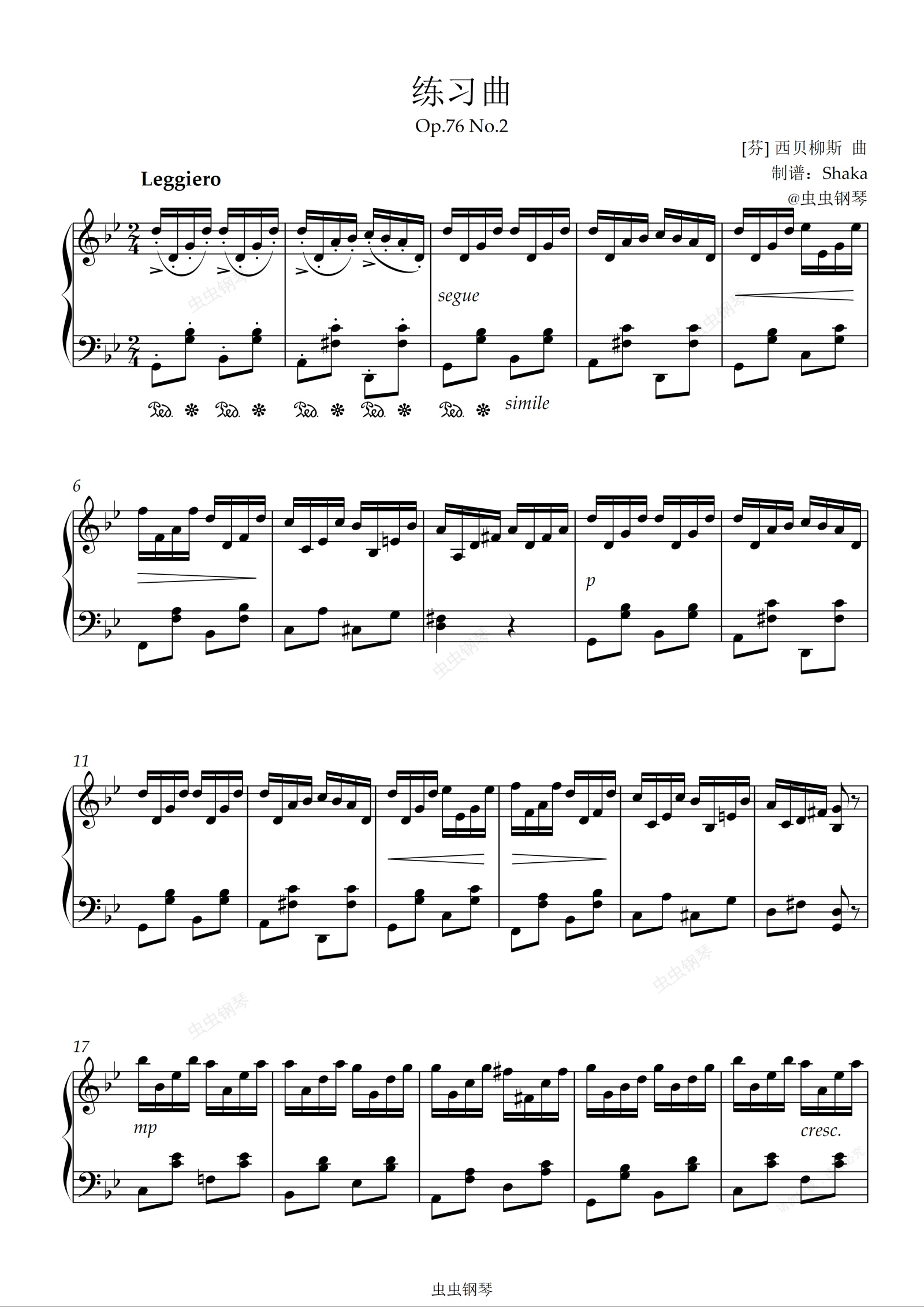 钢琴谱:练习曲 西贝柳斯 g小调版 Op.76 No.2 全国音协8级A-2组考级曲目