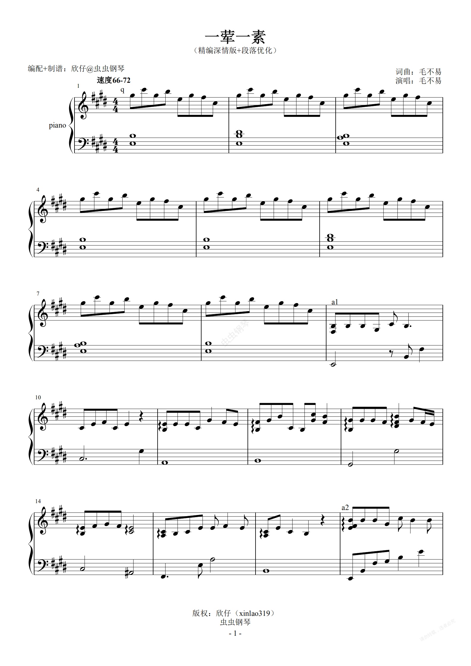 钢琴谱:毛不易-E《一荤一素》(精编深情版+段落优化)