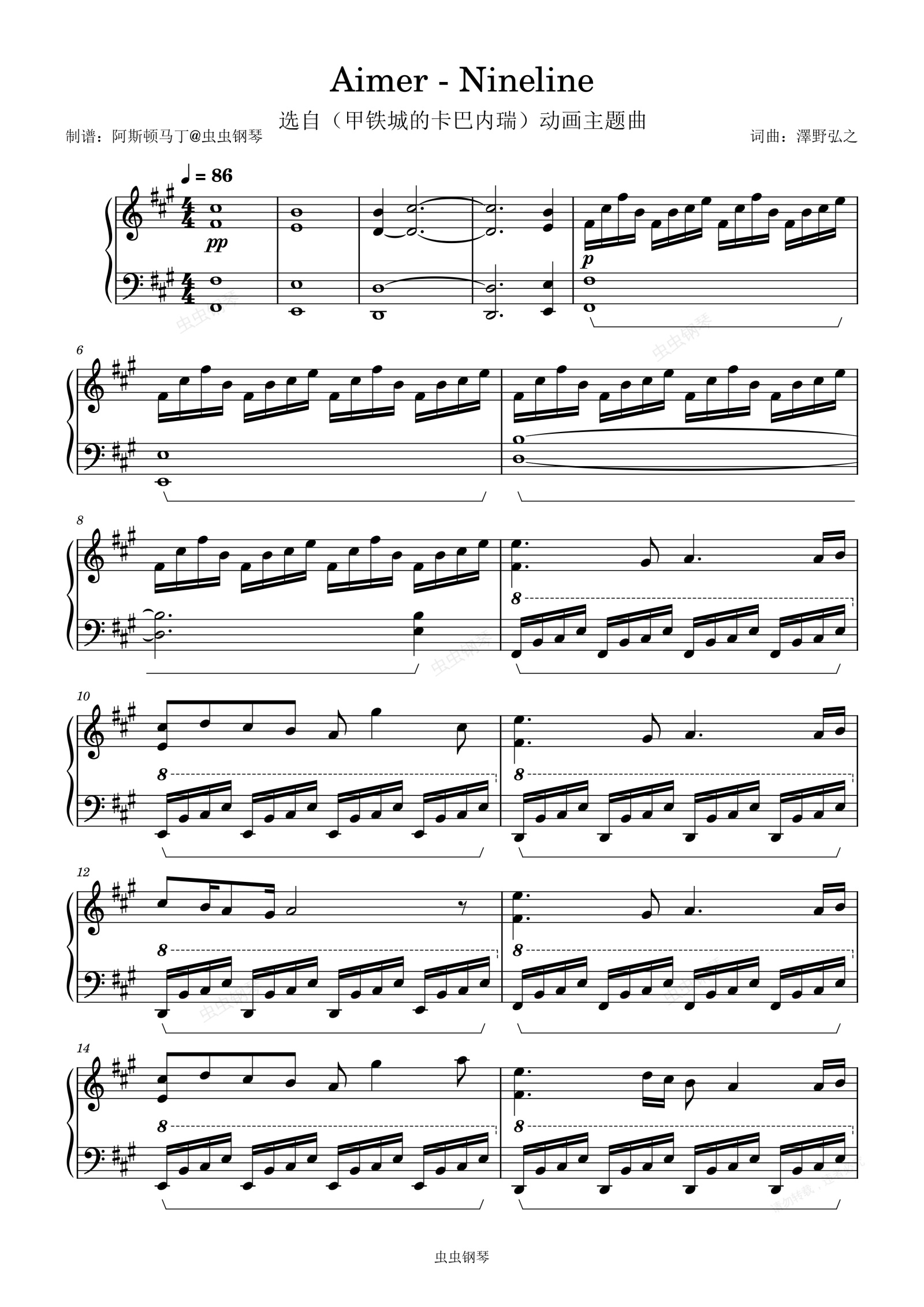 钢琴谱:Aimer - Nineline 甲铁城的卡巴内瑞