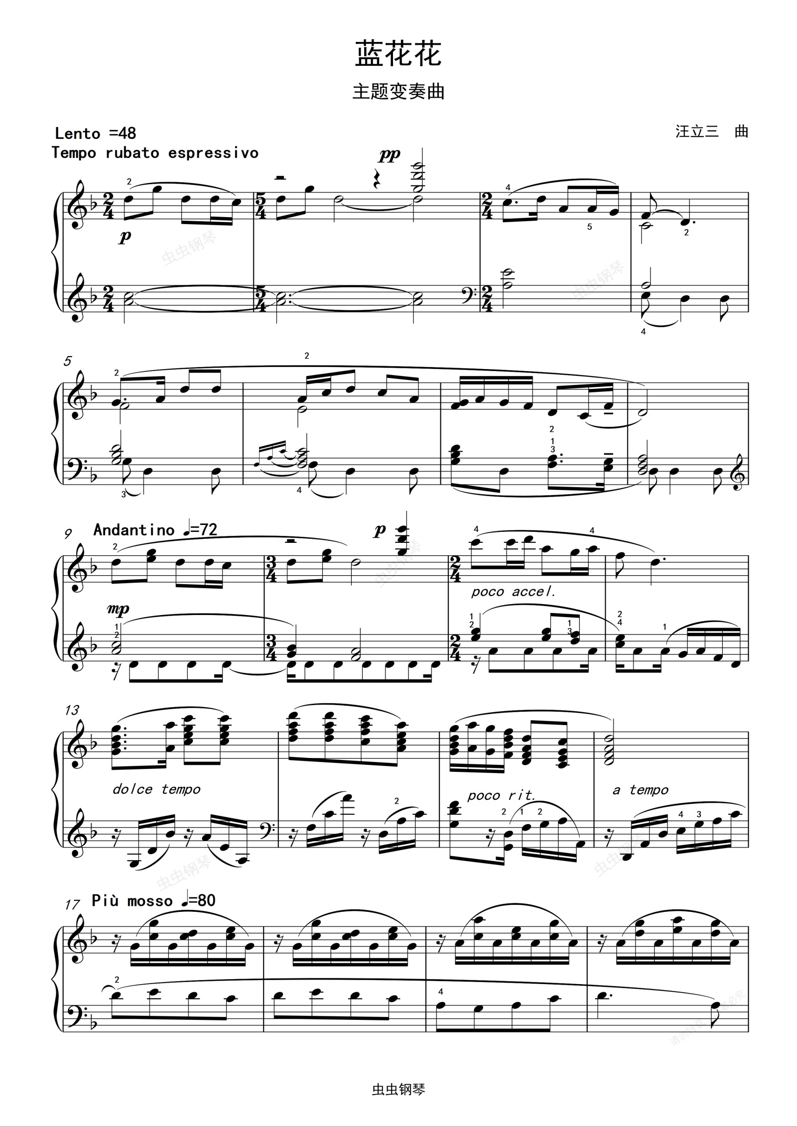 钢琴谱:8级-大型乐曲-蓝花花主题变奏曲
