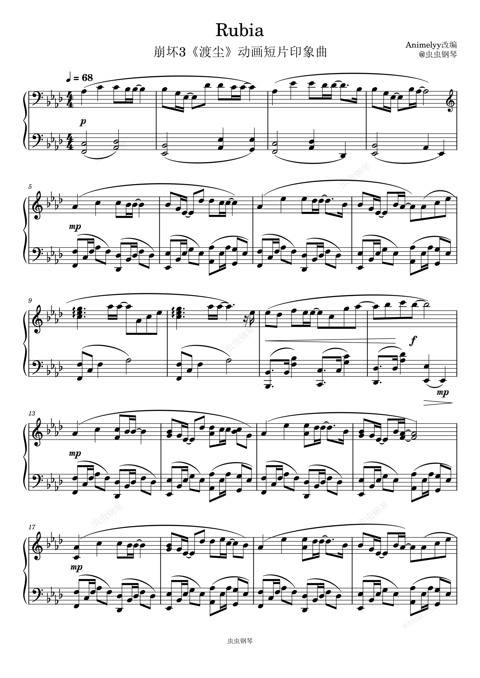 钢琴谱:Rubia(崩坏3《渡尘》动画短片印象曲