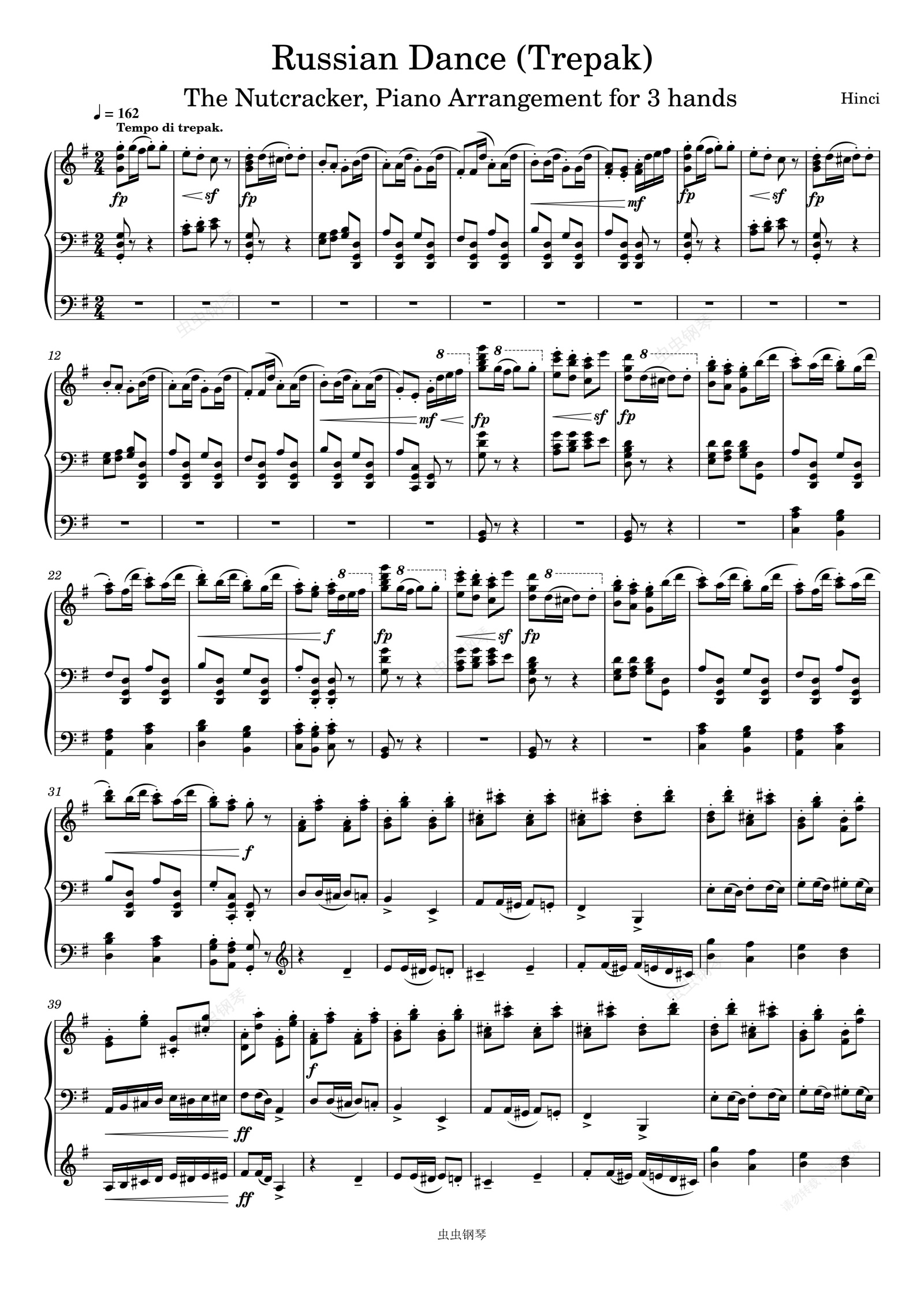 钢琴谱:The Nutcracker, 12d. Russian Dance (Trepak, Piano)