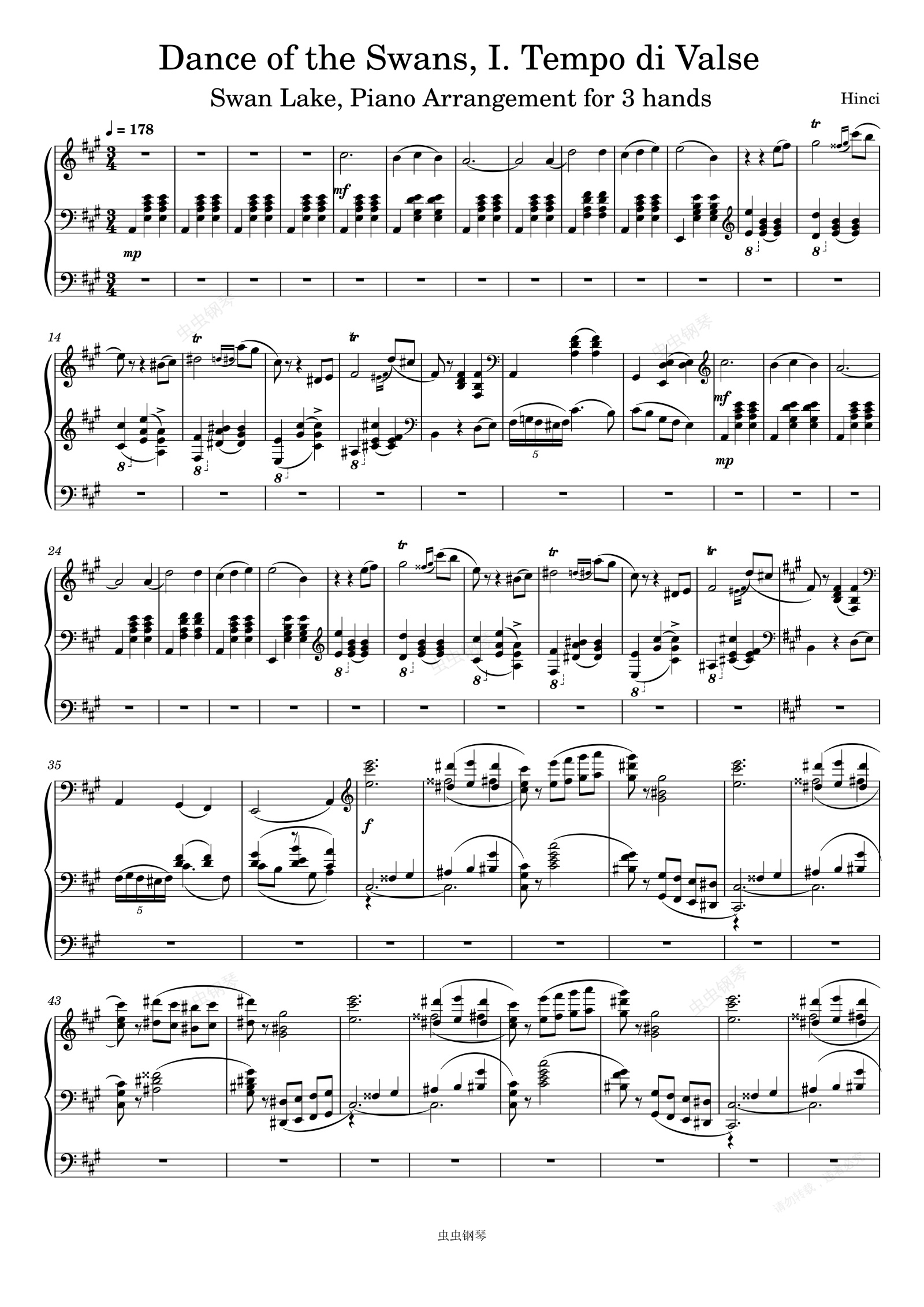 钢琴谱:Swan Lake, 13. Dance of the Swans, I. Tempo di Valse (Piano)