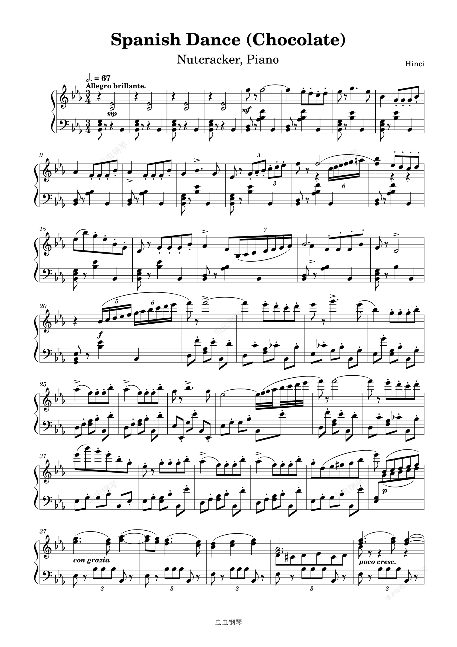 钢琴谱:Nutcracker, 12a. Spanish Dance (Chocolate)