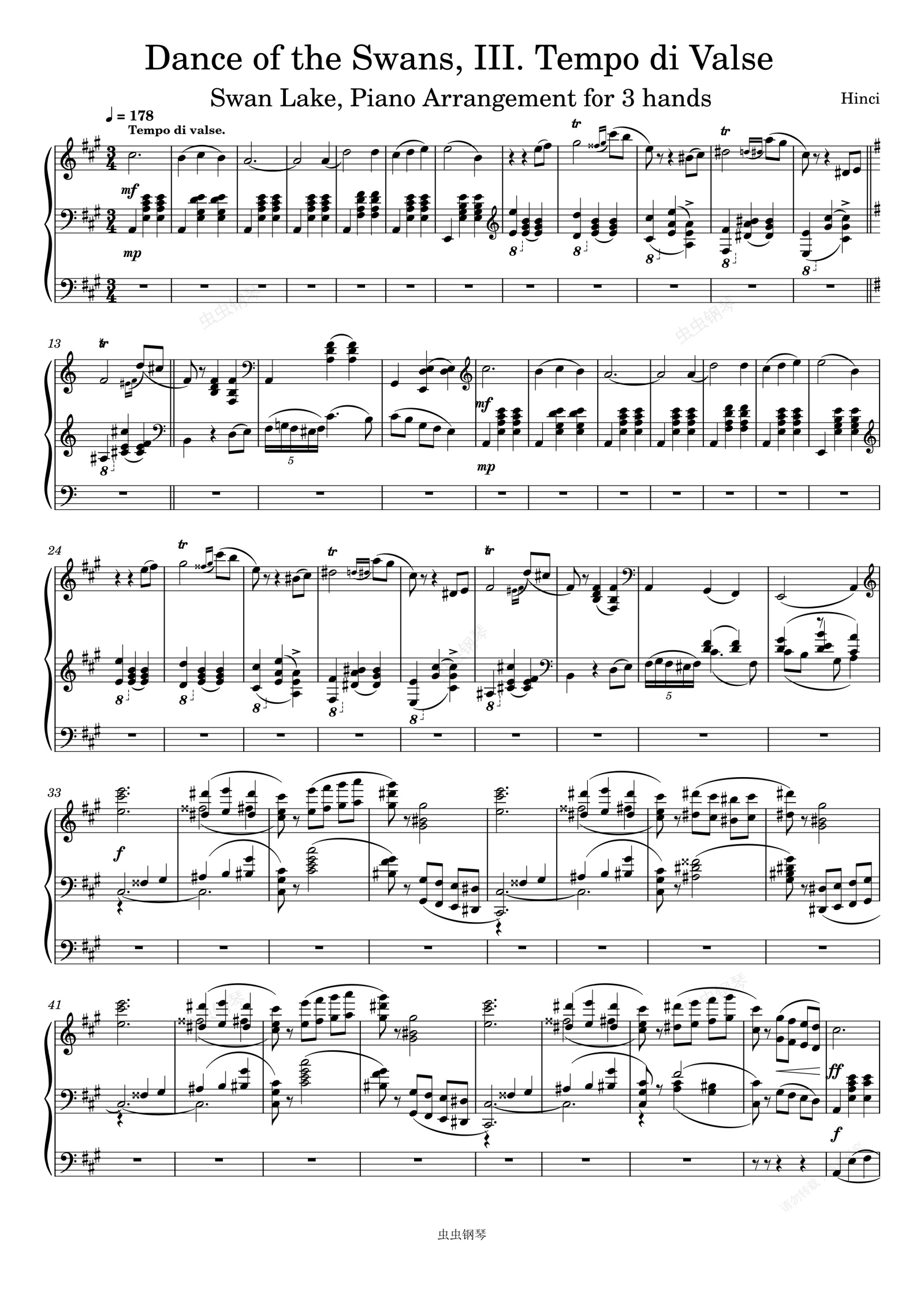 钢琴谱:Swan Lake, 13. Dance of the Swans, III. Tempo di Valse (Piano)