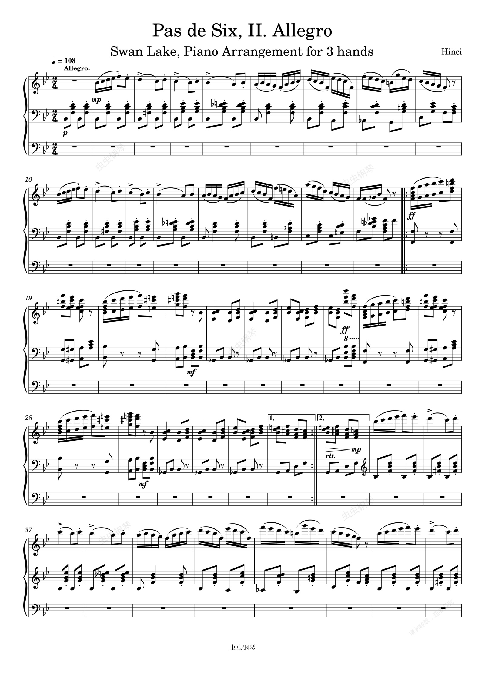钢琴谱:Swan Lake, 19. Pas de Six, II. Allegro (Piano)