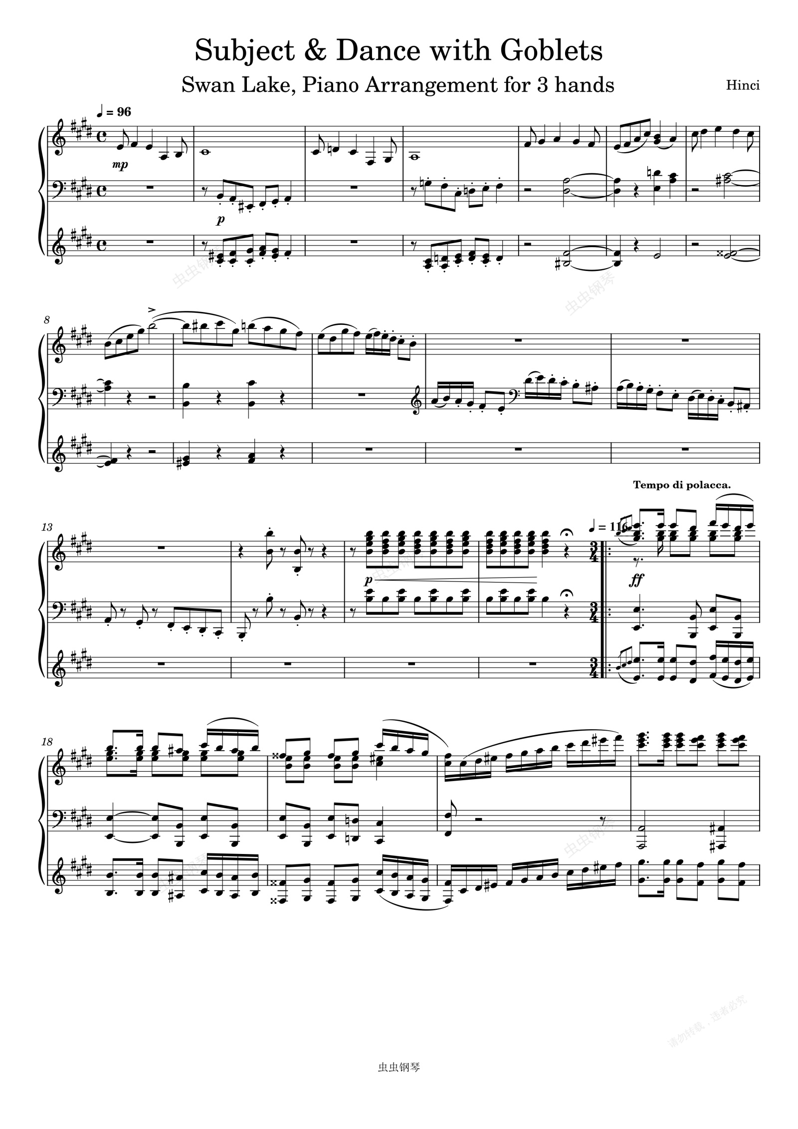 钢琴谱:Swan Lake, 7,8. Subject & Dance with Goblets (Piano)