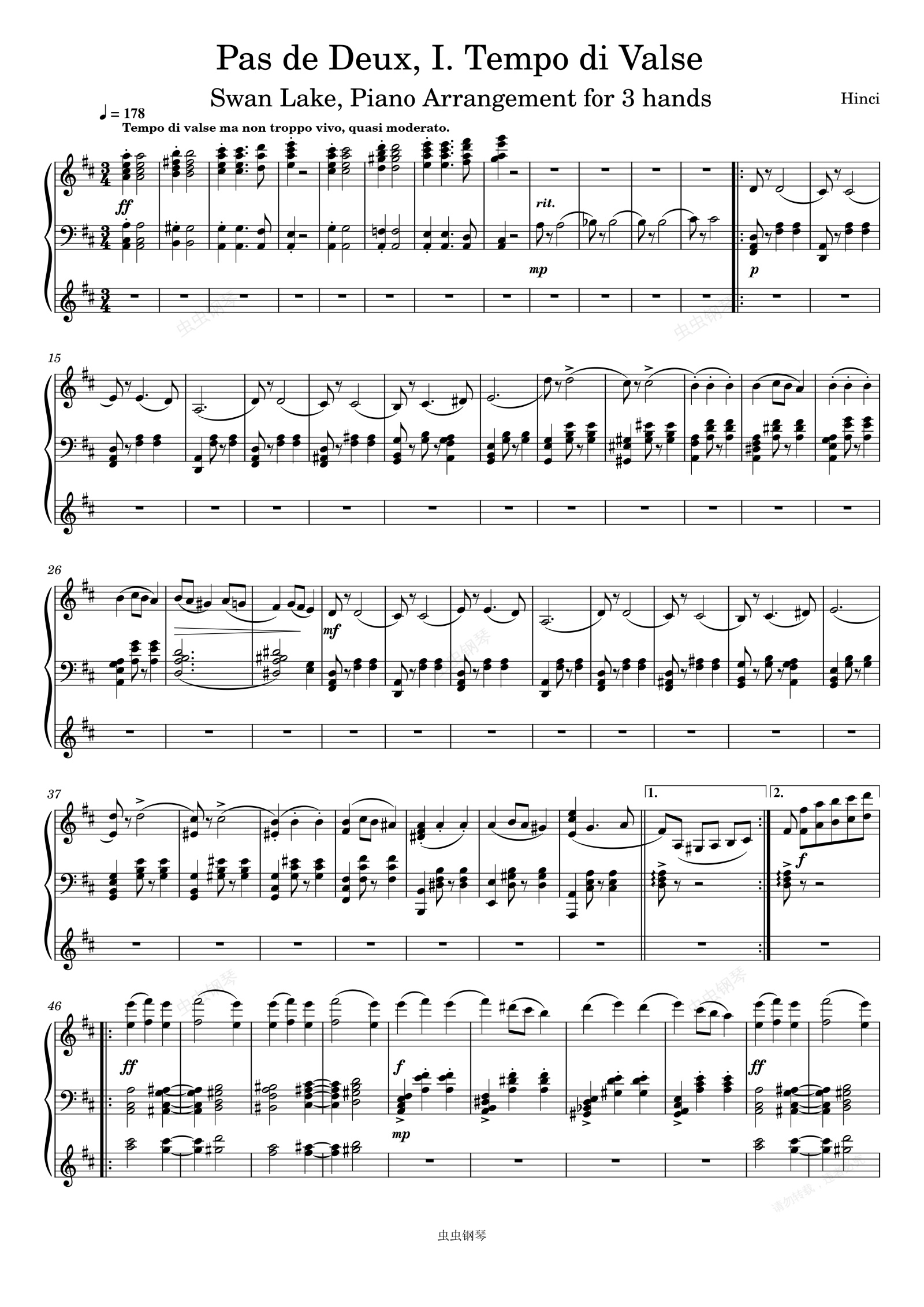 钢琴谱:Swan Lake, 5. Pas de Deux, I. Tempo di Valse (Piano)