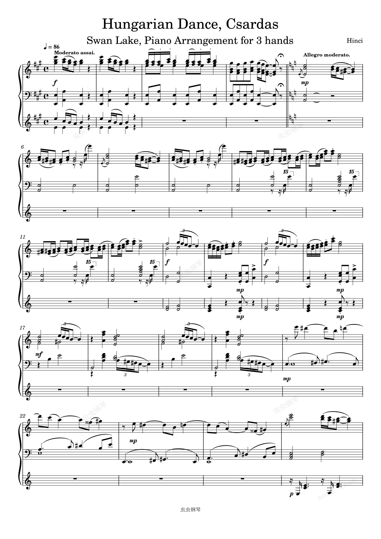 钢琴谱:Swan Lake, 20. Hungarian Dance, Csardas (Piano)