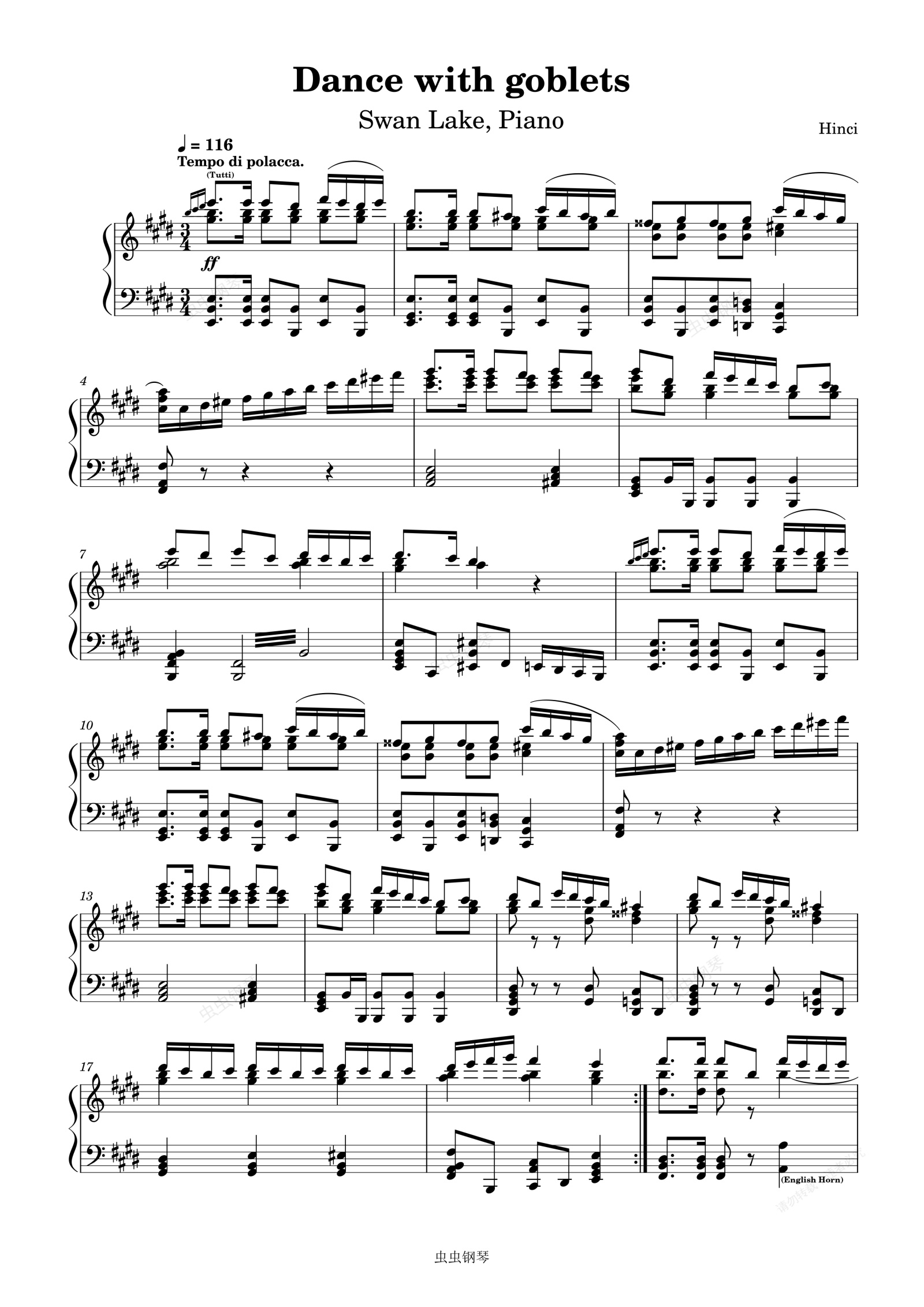 钢琴谱:Swan Lake, 8. Dance with goblets (Solo)