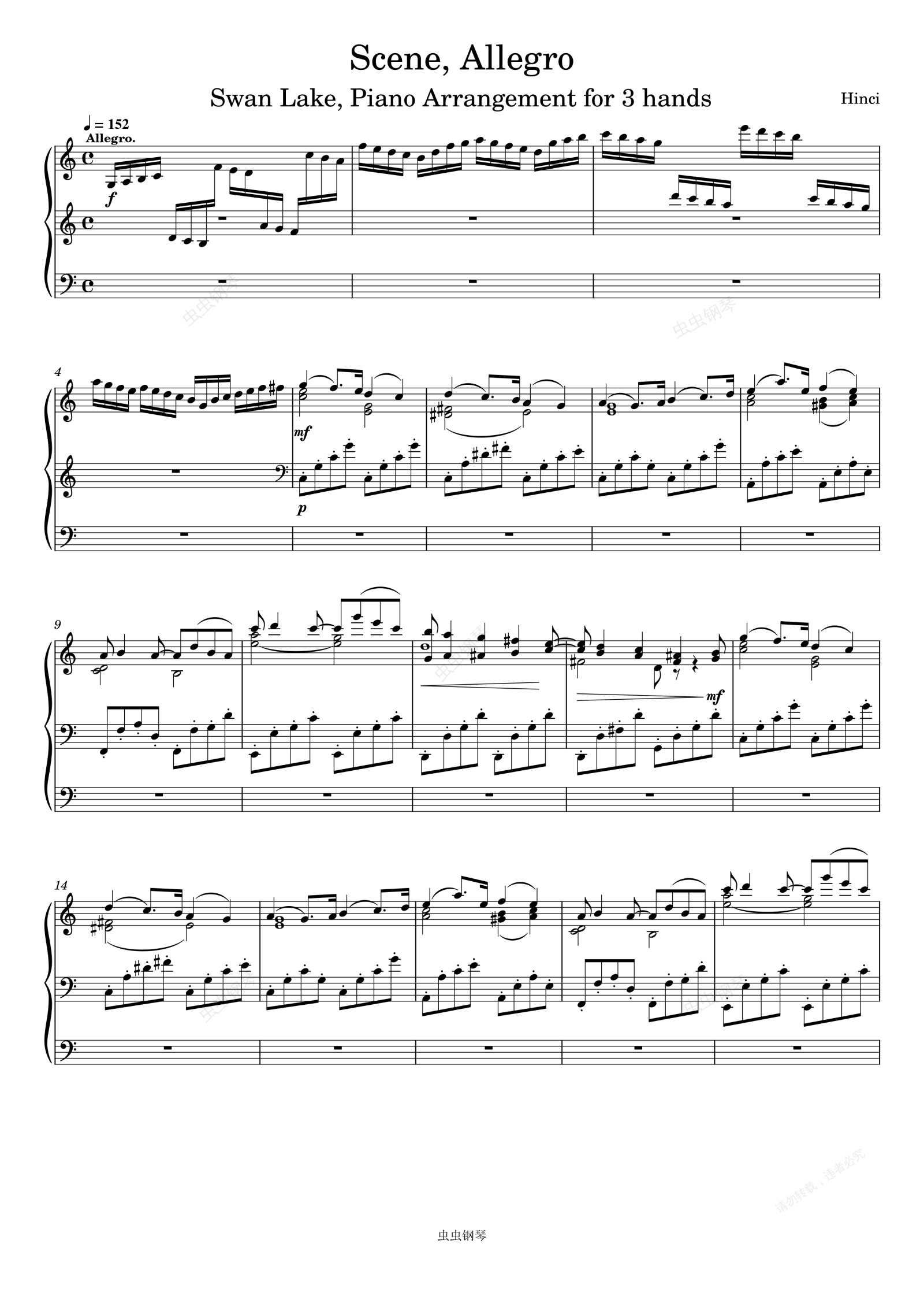 钢琴谱:Swan Lake, 24. Scene, Allegro (Piano)