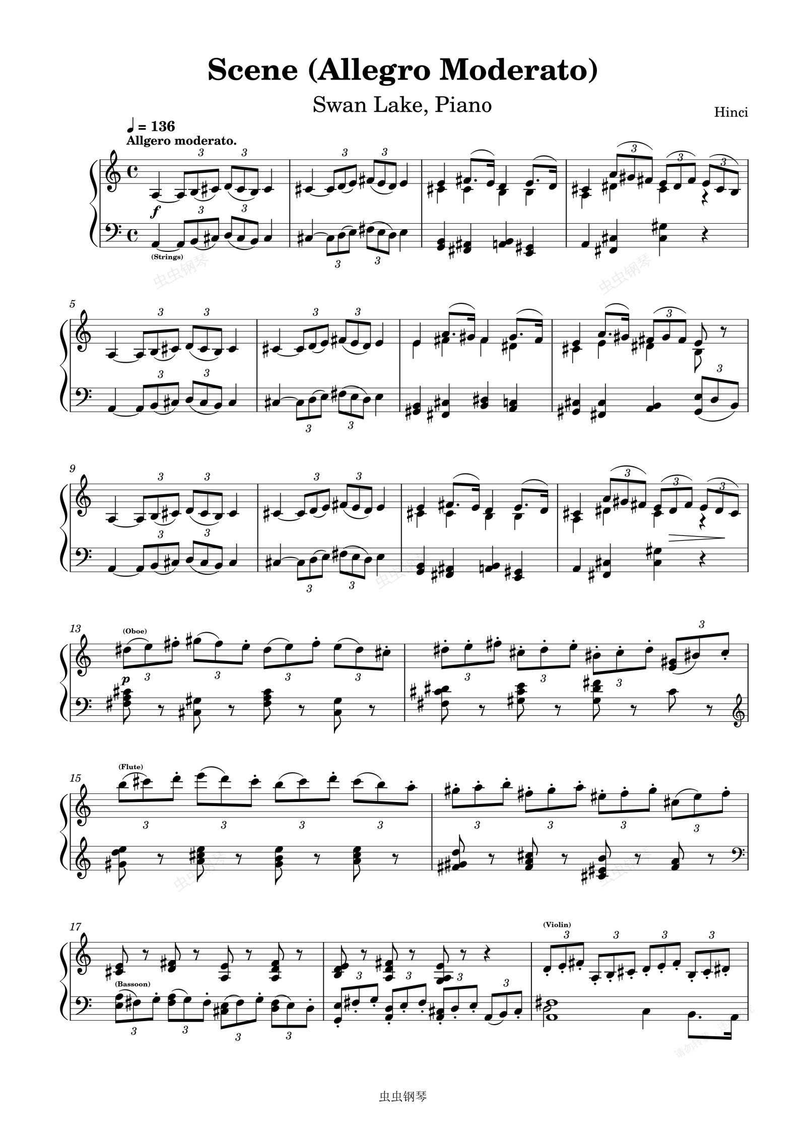 钢琴谱:Swan Lake, 3. Scene (Allegro Moderato, Solo)