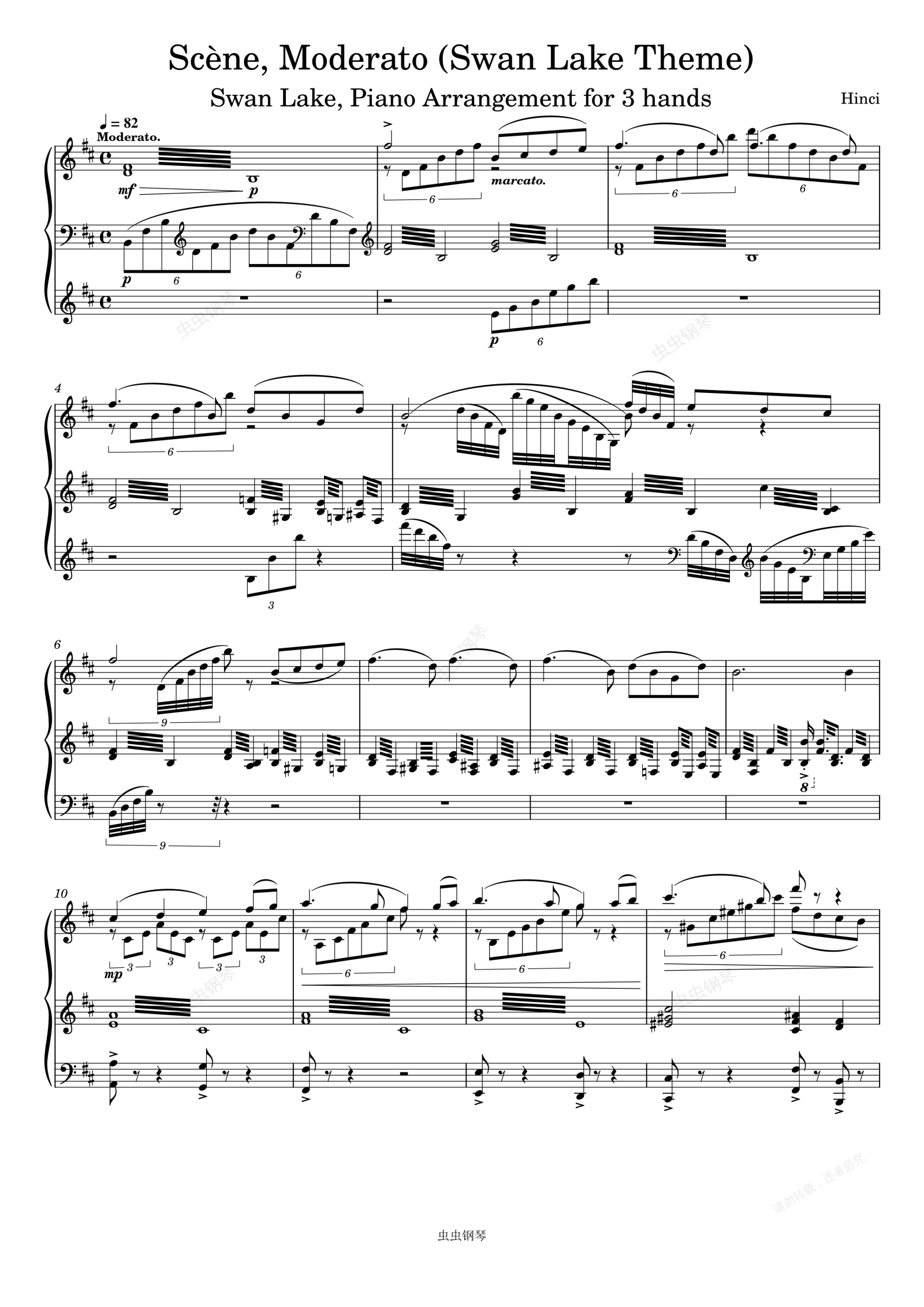 钢琴谱:Swan Lake, 10. Scène (Moderato, Piano)