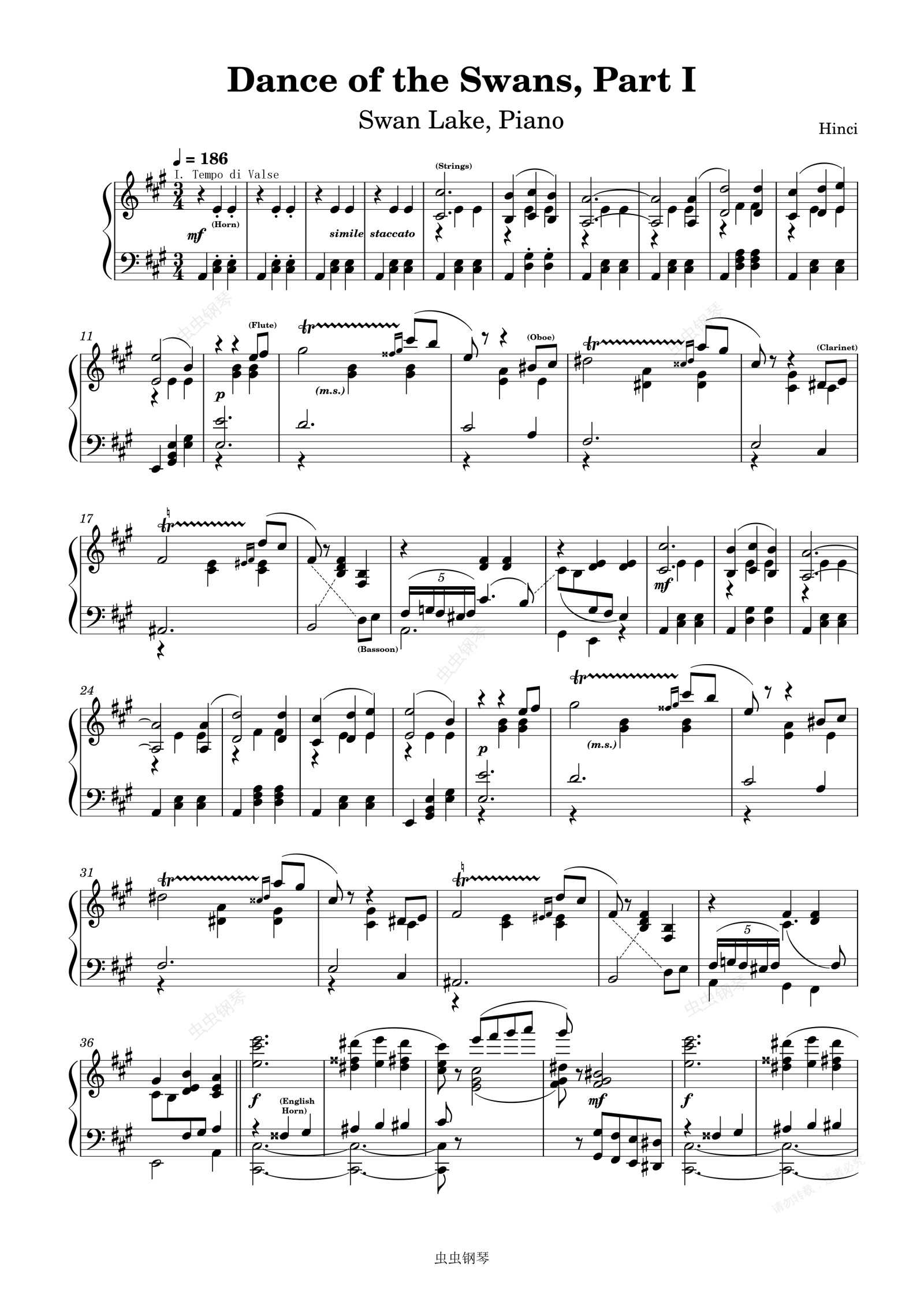钢琴谱:Swan Lake, 13. Dance of the Swans Part 1 (Solo)