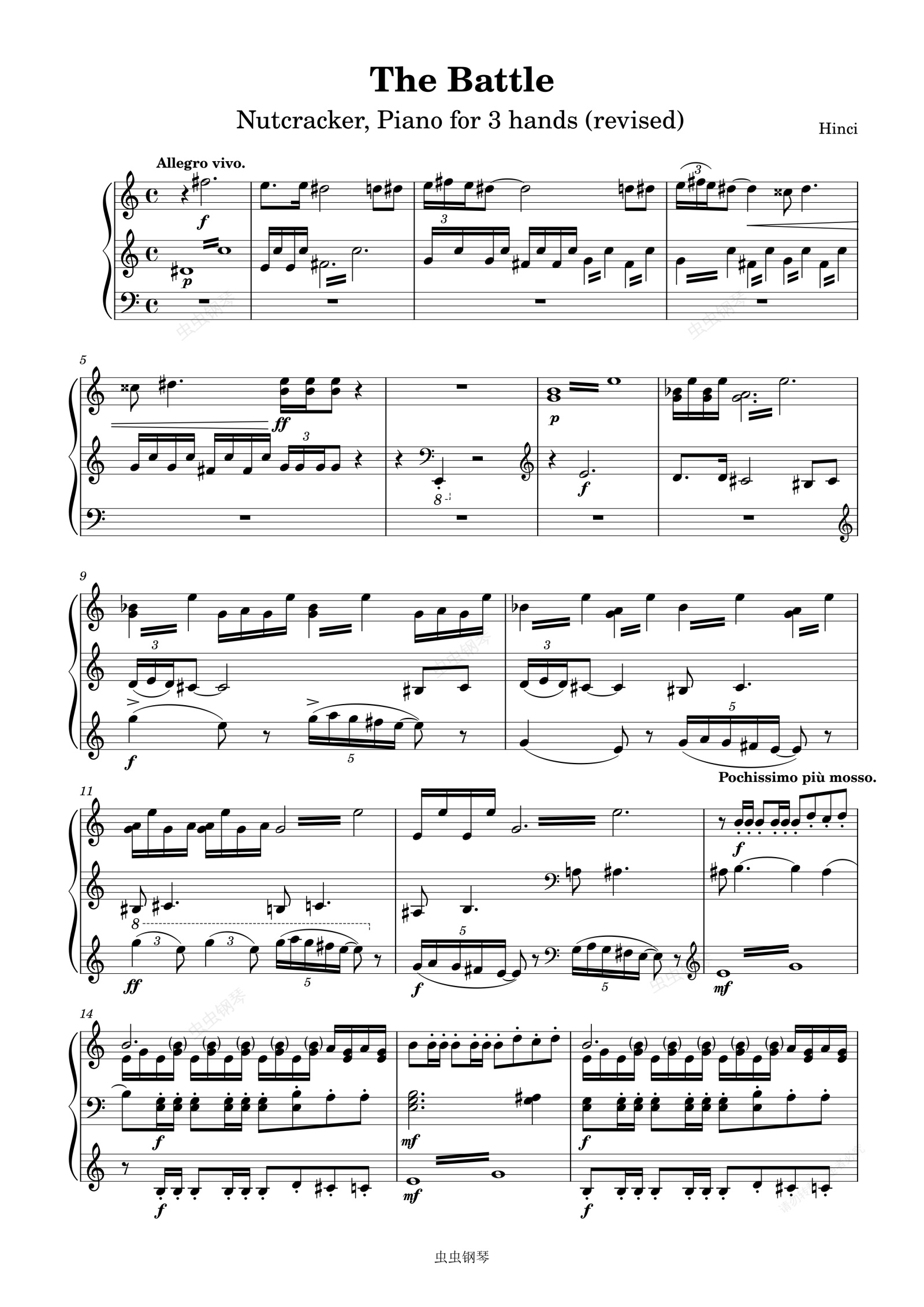 钢琴谱:Nutcracker, The Battle, 3 hands (revised)