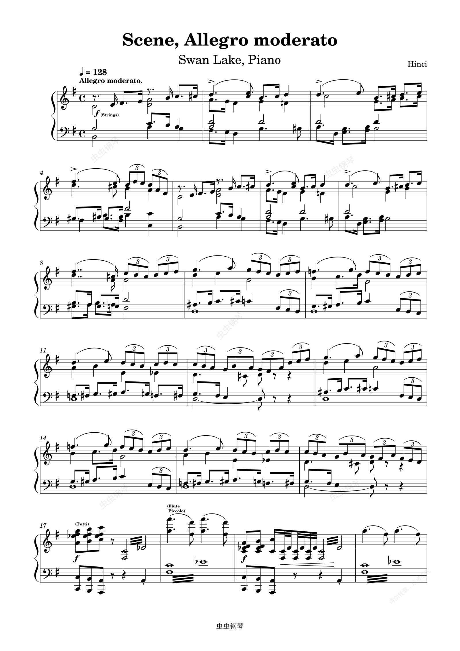 钢琴谱:Swan Lake, 11. Scene, Allegro moderato (Solo)