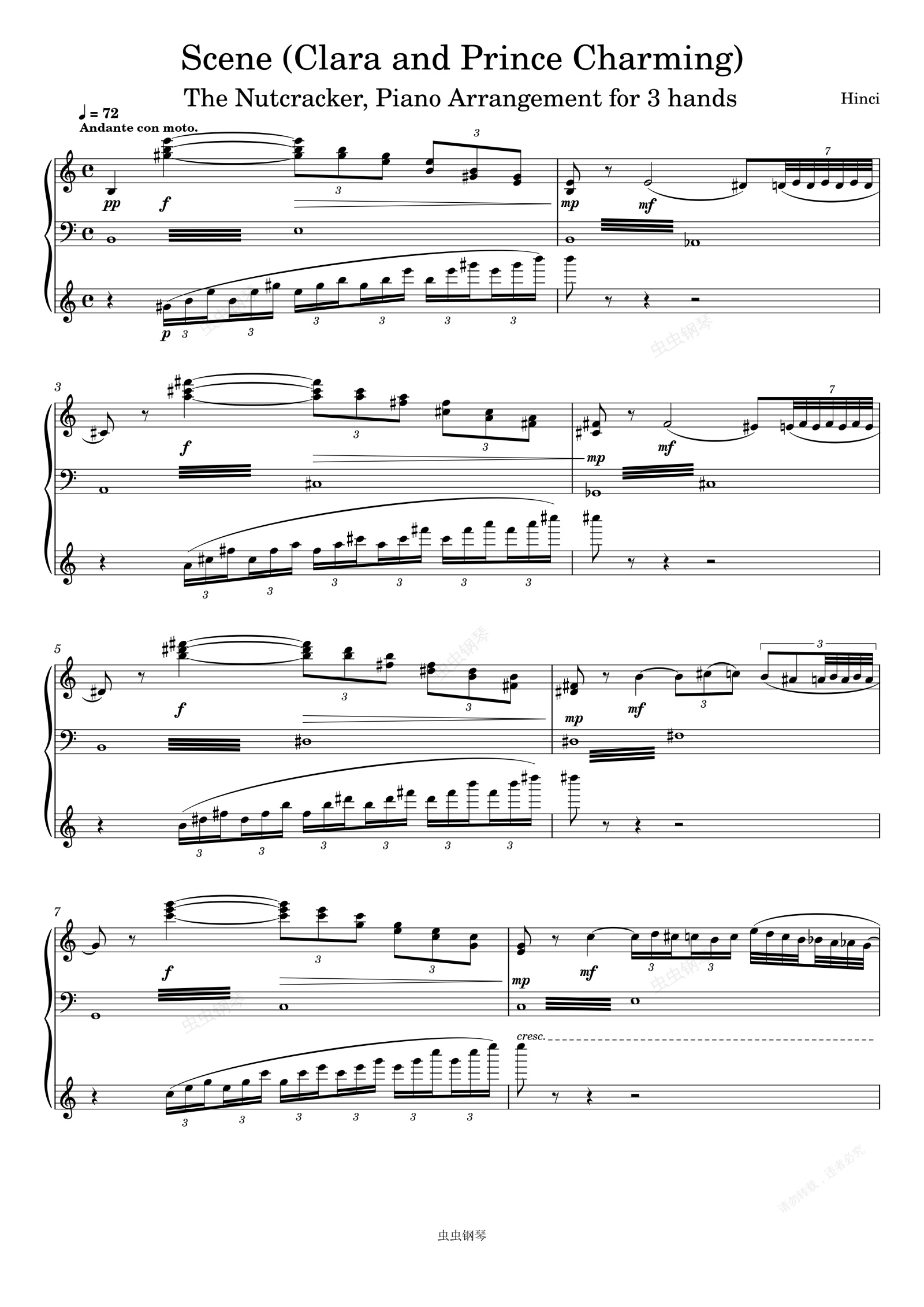 钢琴谱:The Nutcracker, 11. Scene (Clara and Prince Charming, Piano)