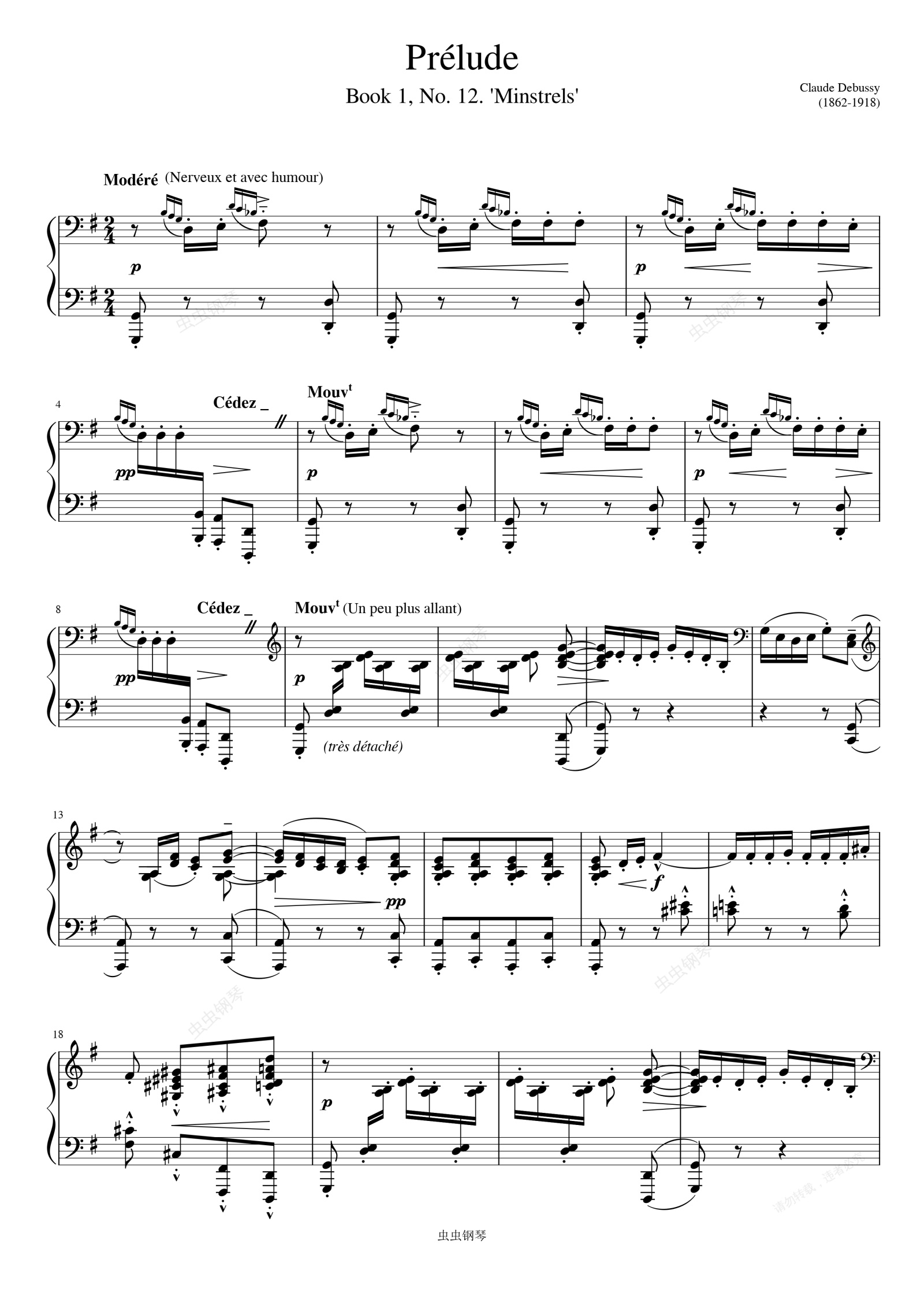 钢琴谱:Debussy - Prelude Bk 1 No 12 Minstrels