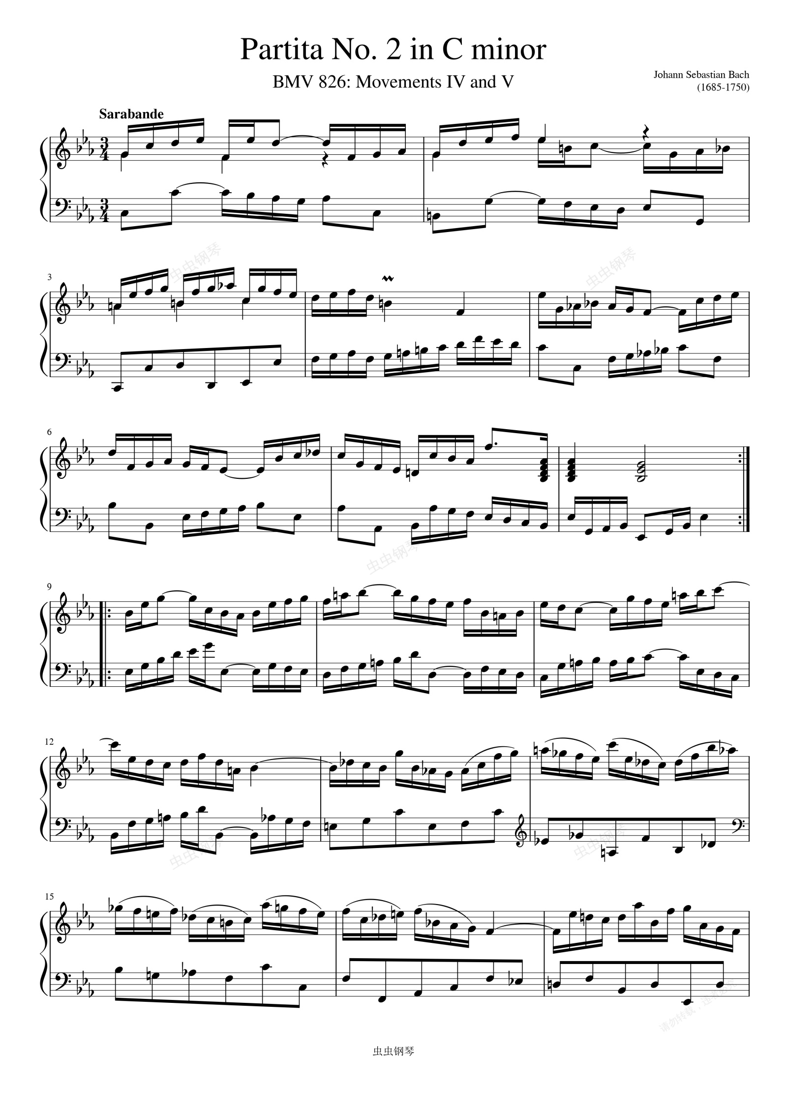 钢琴谱:Bach JS - Partita No 2 in C minor BMV 826 Movements IV and V