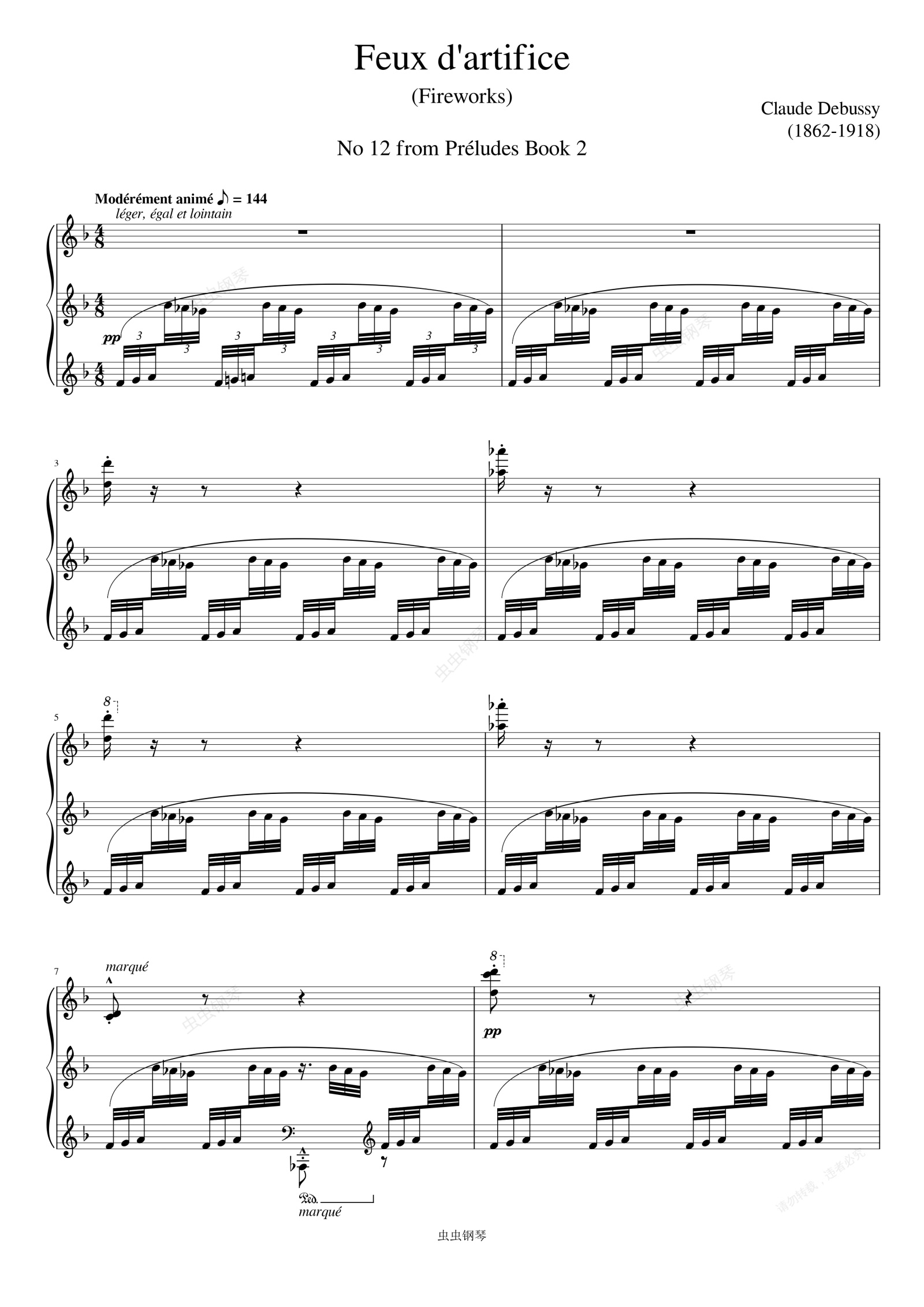 钢琴谱:Debussy Prelude Book 2 No 12 Feux d'artifice