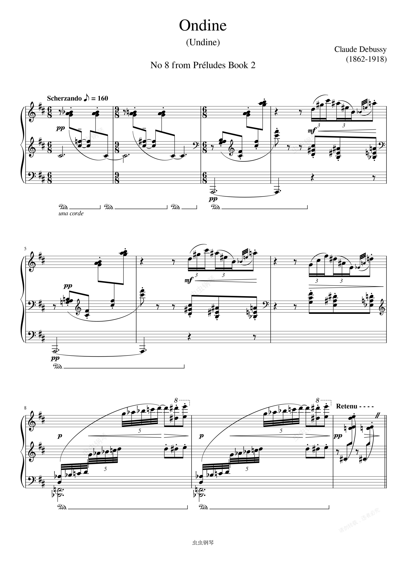 钢琴谱:Debussy Prelude Book 2 No 8 Ondine