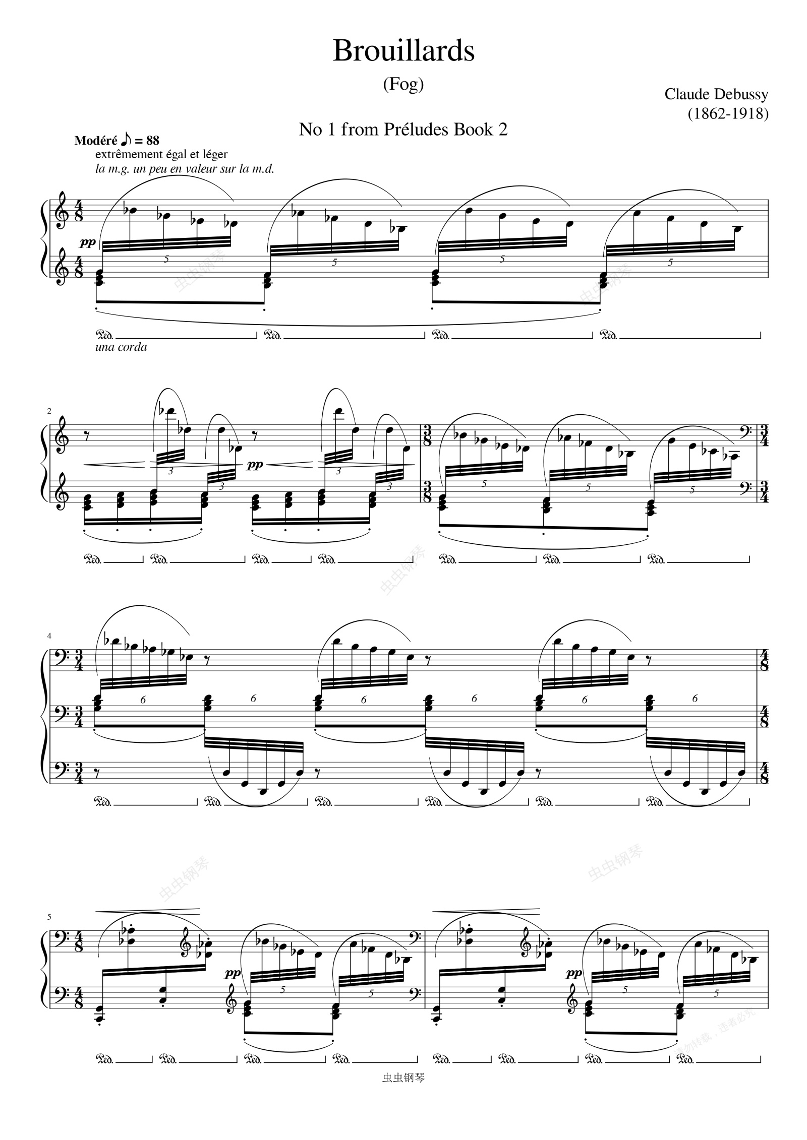 钢琴谱:Debussy Prelude Book 2 No 1 Brouillards