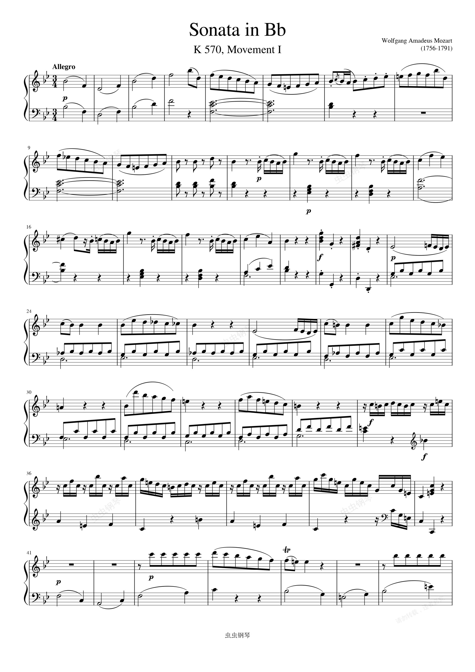 钢琴谱:莫扎特第十七钢琴奏鸣曲 Mozart - Sonata in Bb K 570 Movement I